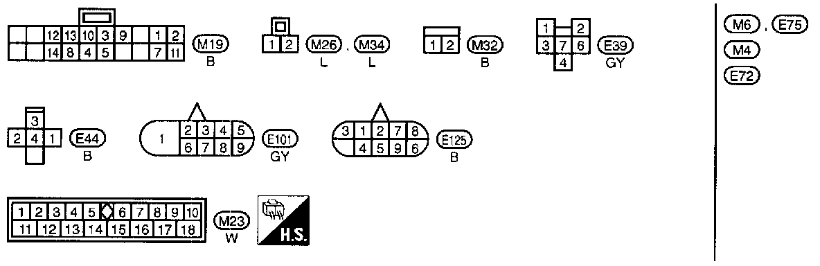 M2, M4, E72 Fuse Block-Junction Box (J/B) Terminal Arrangement