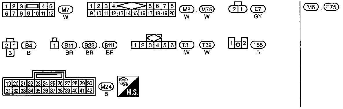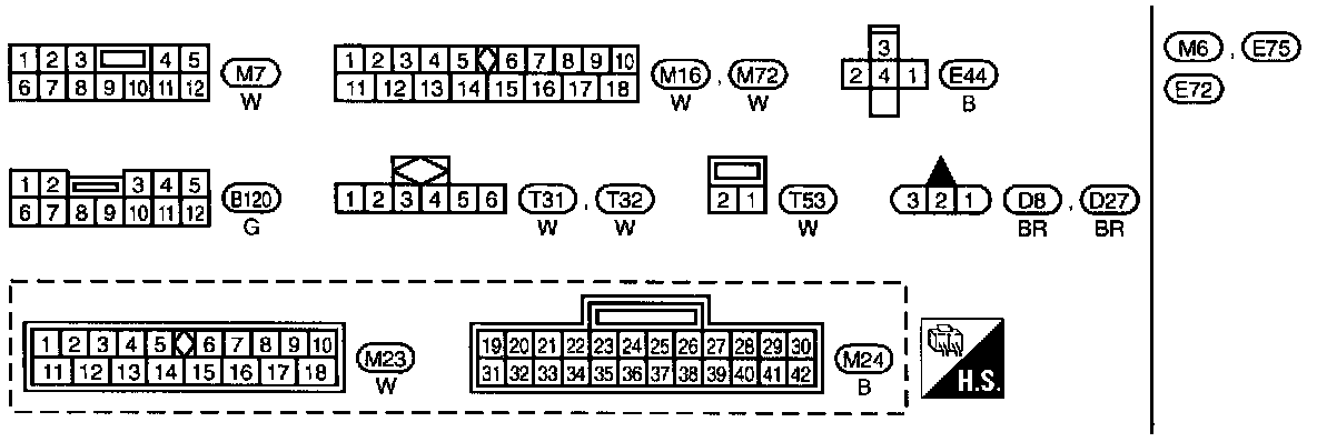M1, M3, M5, E72 Fuse Block-Junction Box (J/B) Terminal Arrangement
