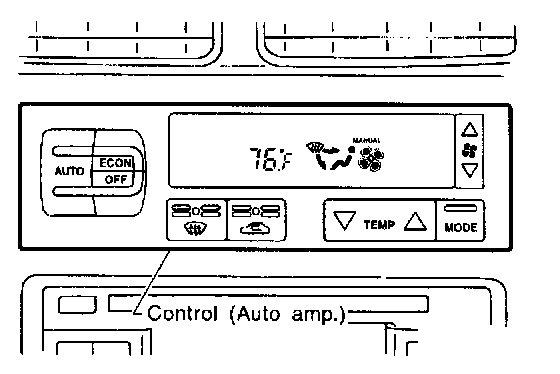 The PTC is built into the A/C auto amp. It can be set at an interval of 0.5 °C (1.0 °F) in the 18 °C (65 °F) to 32 °C (85 °F) temperature range by pushing the temperature button. The set temperature is digitally displayed.