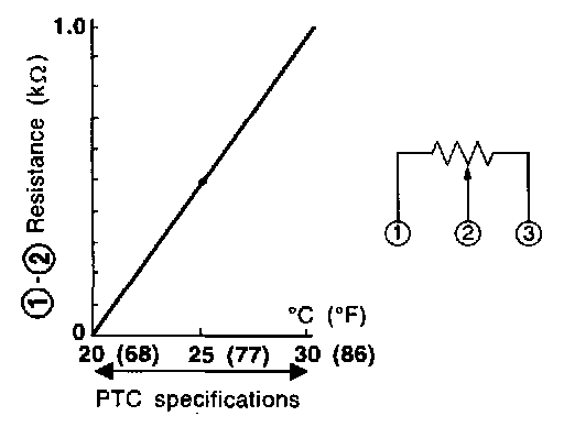 The PTC is built into the control unit. It has a variable resistance which changes according to the set temperature. This resistance is connected to the temperature control lever.