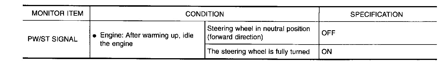 1. Disconnect power steering oil pressure switch harness connector then start engine.