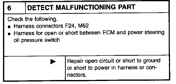 7 CHECK POWER STEERING OIL PRESSURE SWITCH: