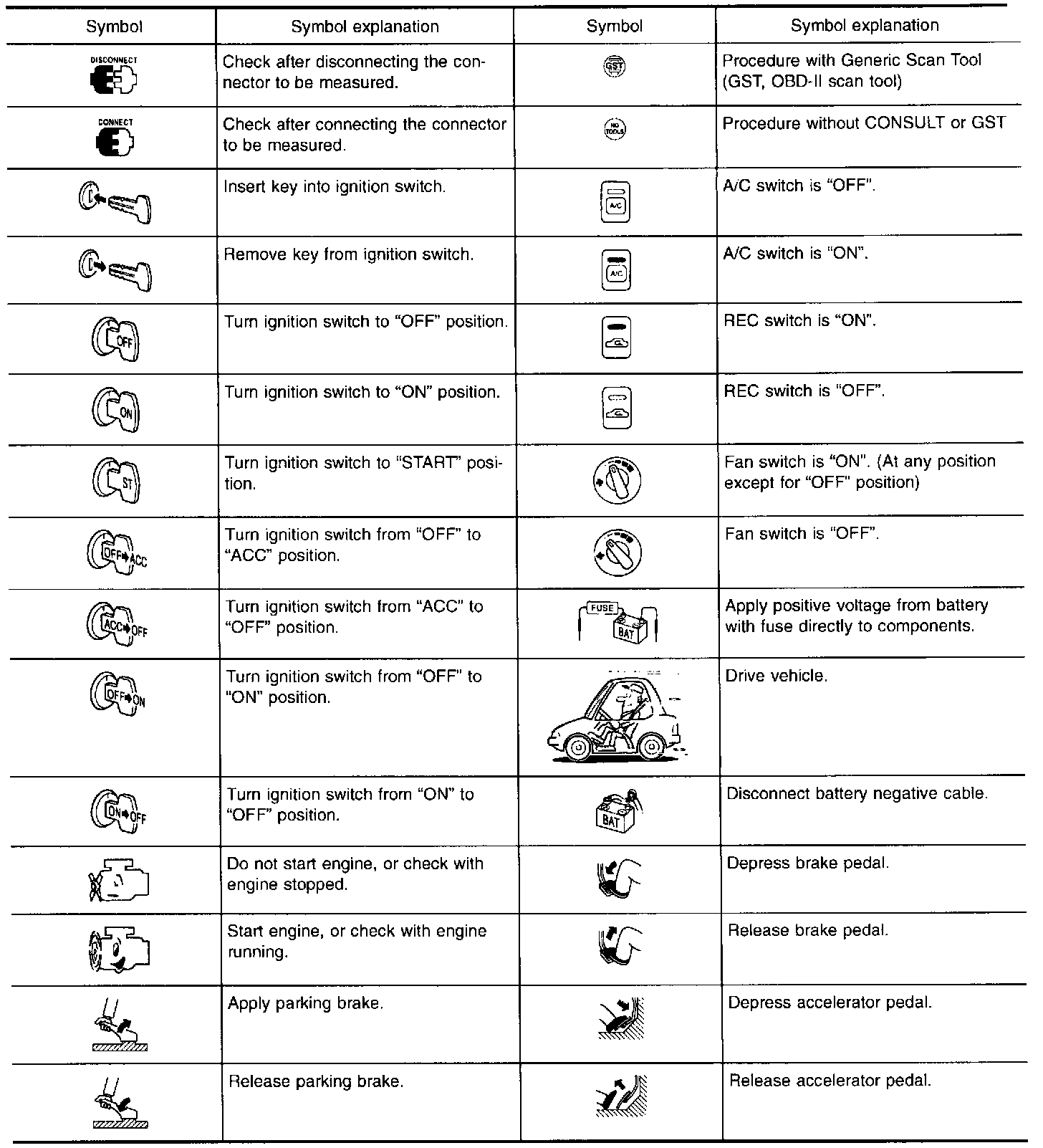 Key to Symbols Signifying Measurements or Procedures