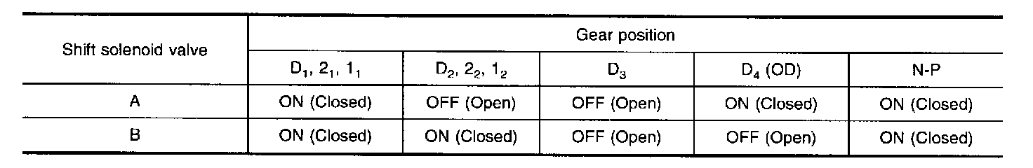 Relation Between Shift Solenoid Valves A and B and Gear Positions