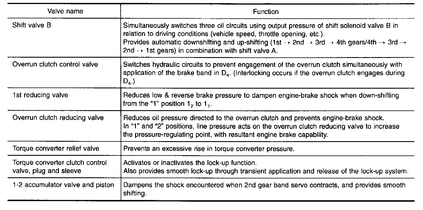 Hydraulic pressure on the clutch and brake is electronically controlled through the line pressure solenoid valve to accommodate engine torque. This results in smooth shift operation.