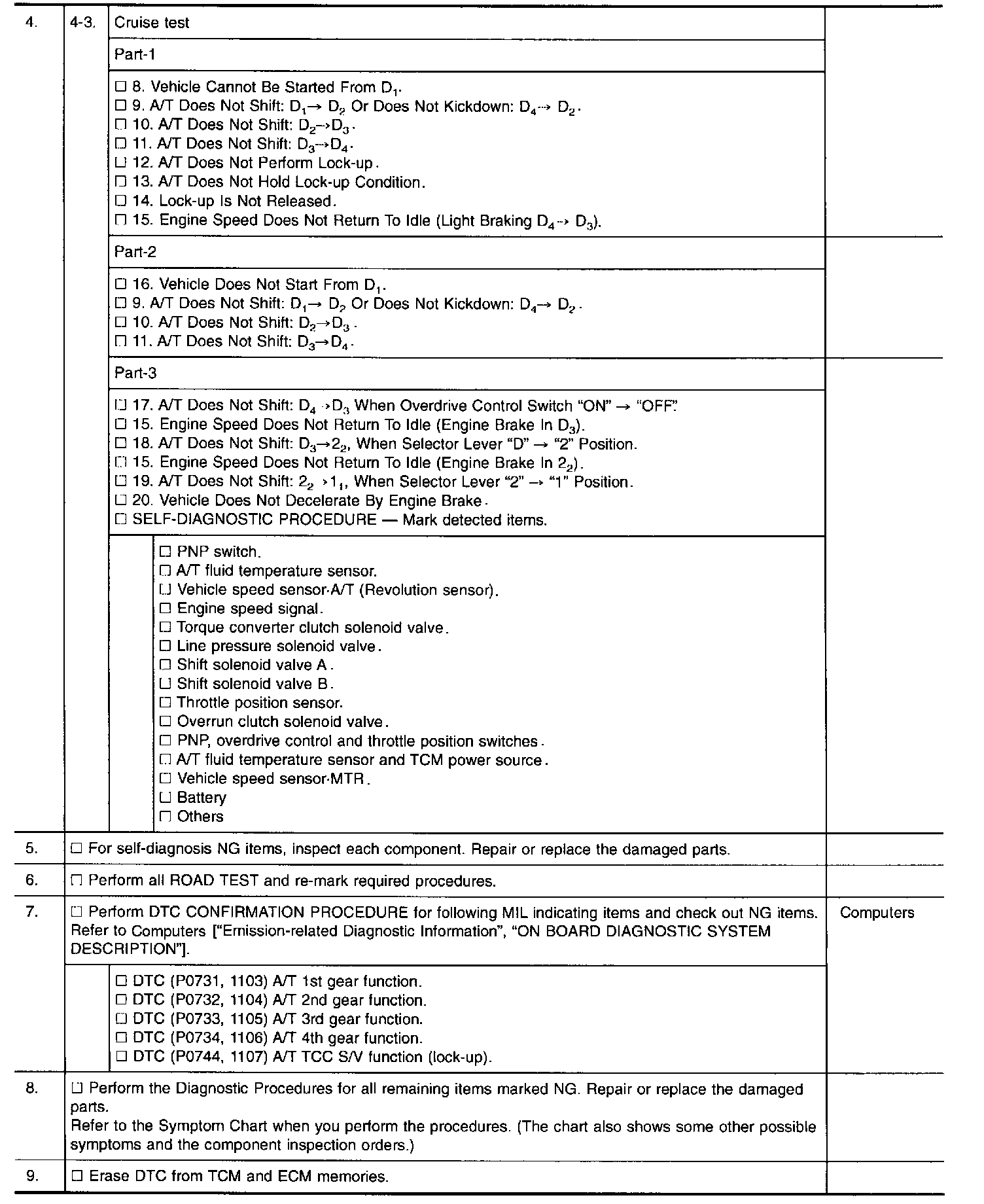 Input and output signals must always be correct and stable in the operation of the A/T system. The A/T system must be in good operating condition and be free of valve seizure, solenoid valve malfunction, etc.