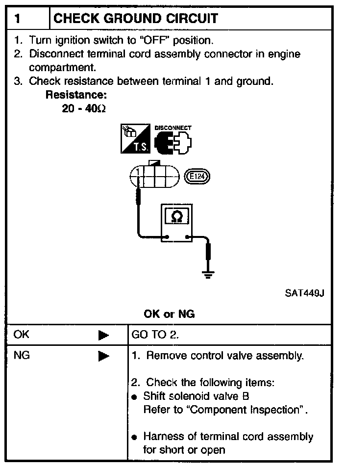 - Check solenoid valve by listening for its operating sound while applying battery voltage to the terminal and ground.