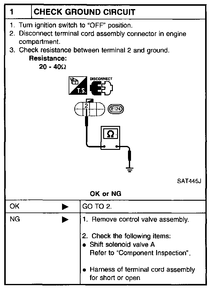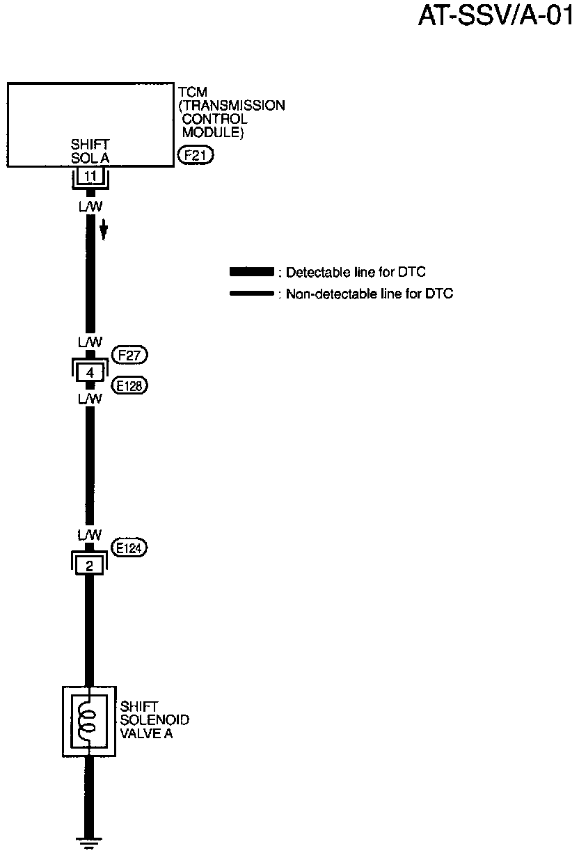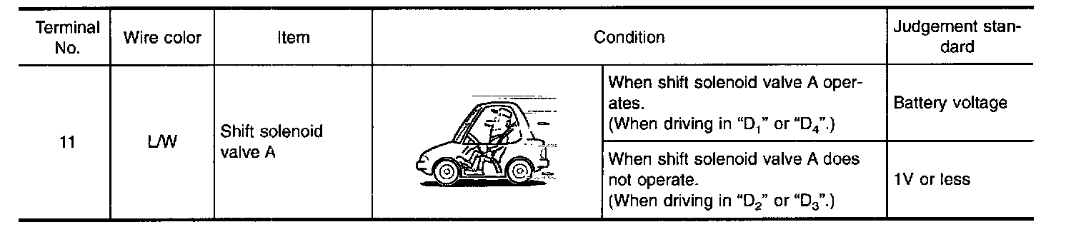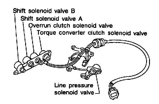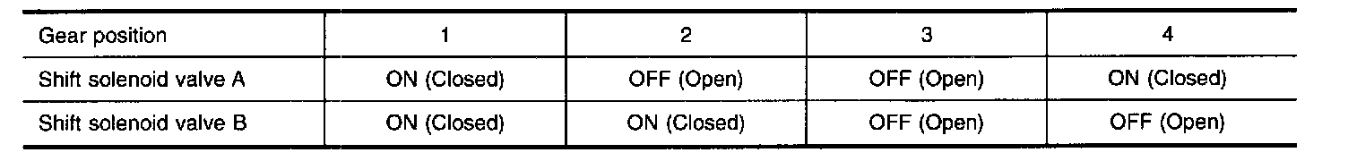 Shift solenoid valves A and B are turned "ON" or "OFF" by the TCM in response to signals sent from the PNP switch, vehicle speed and throttle position sensors. Gears will then be shifted to the optimum position.