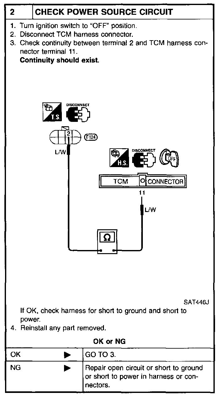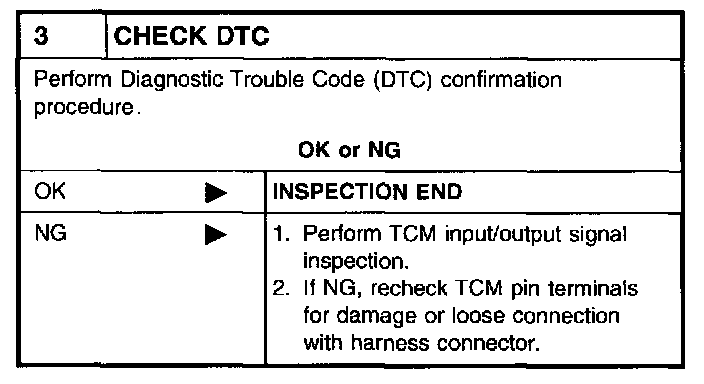 NOTE: If "DIAGNOSTIC TROUBLE CODE CONFIRMATION PROCEDURE" has been previously conducted, always turn ignition switch "OFF" and wait at least 5 seconds before conducting the next test.