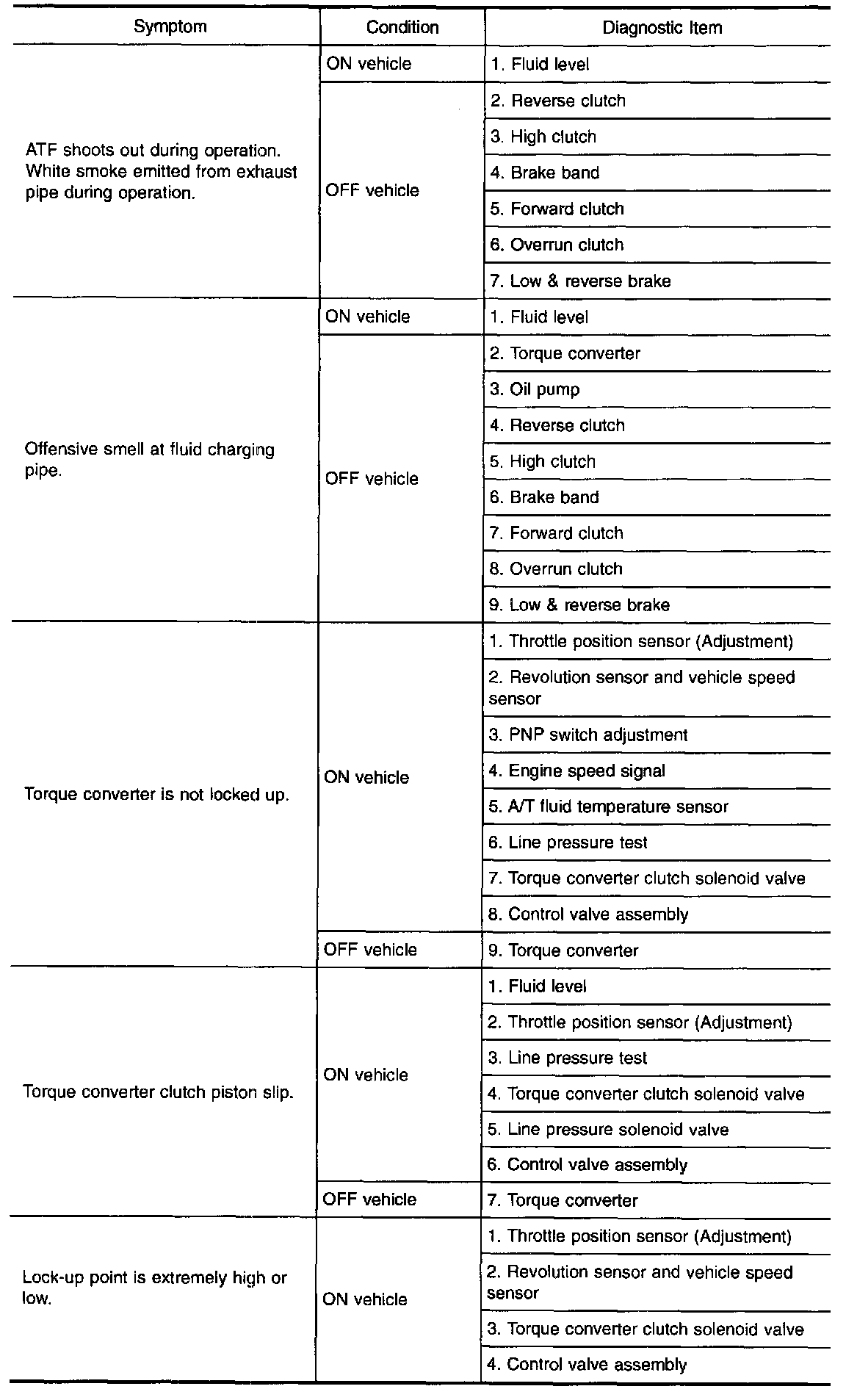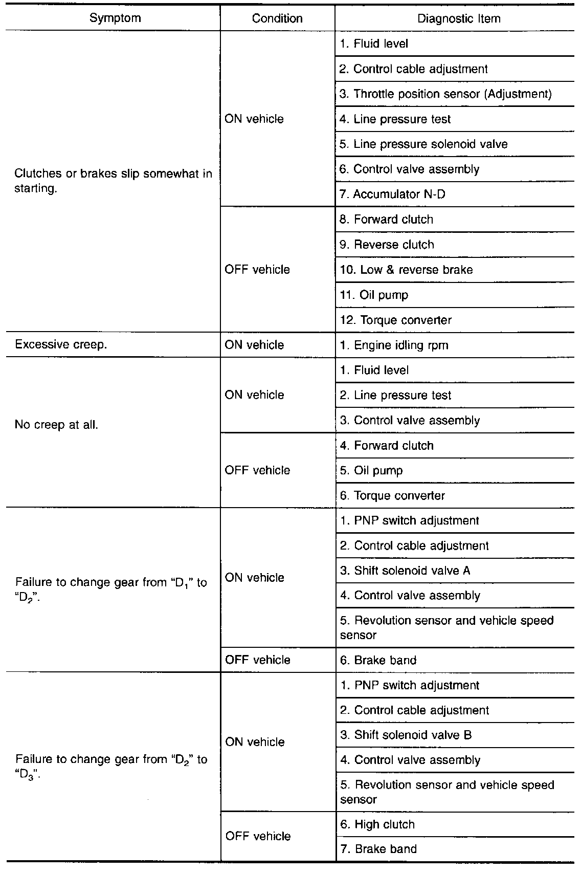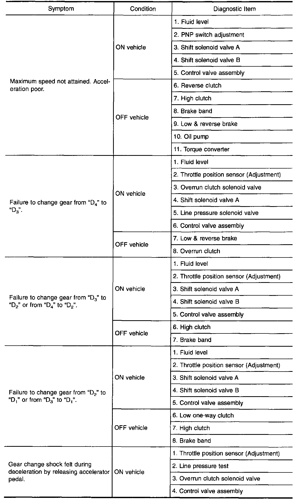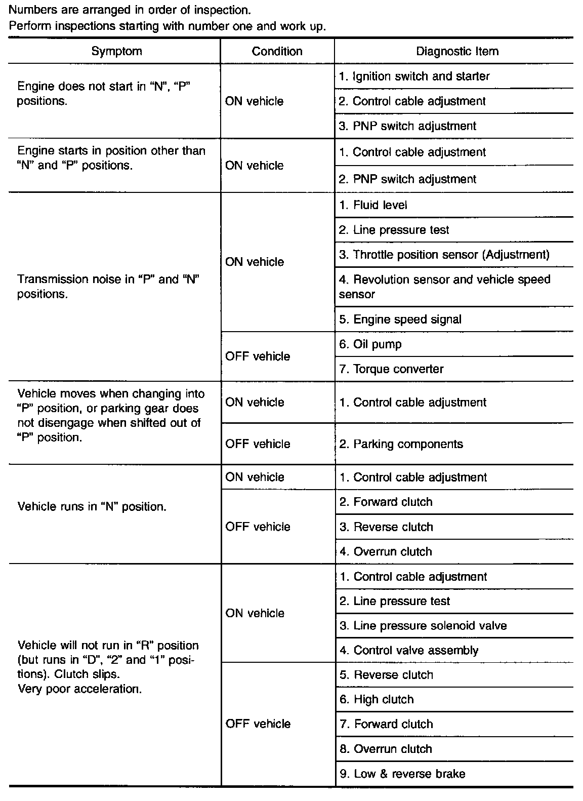 SYMPTOM CHART Numbers are arranged in order of inspection.