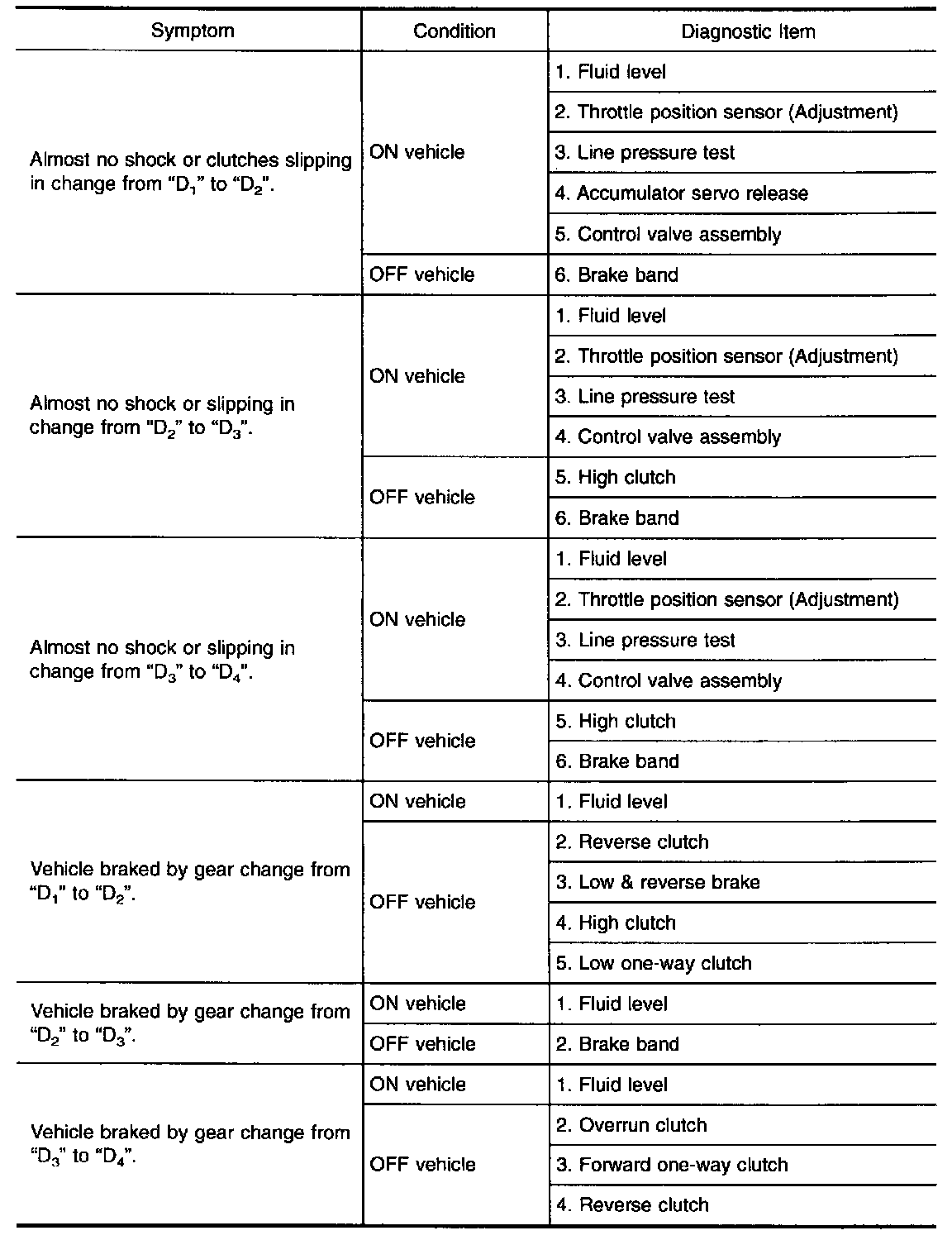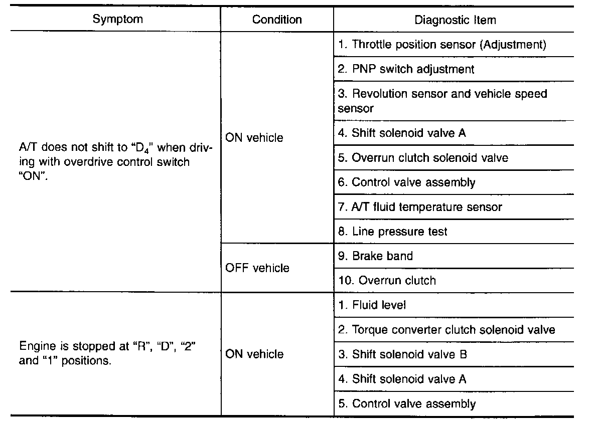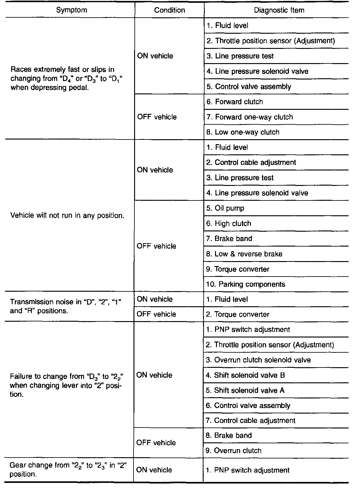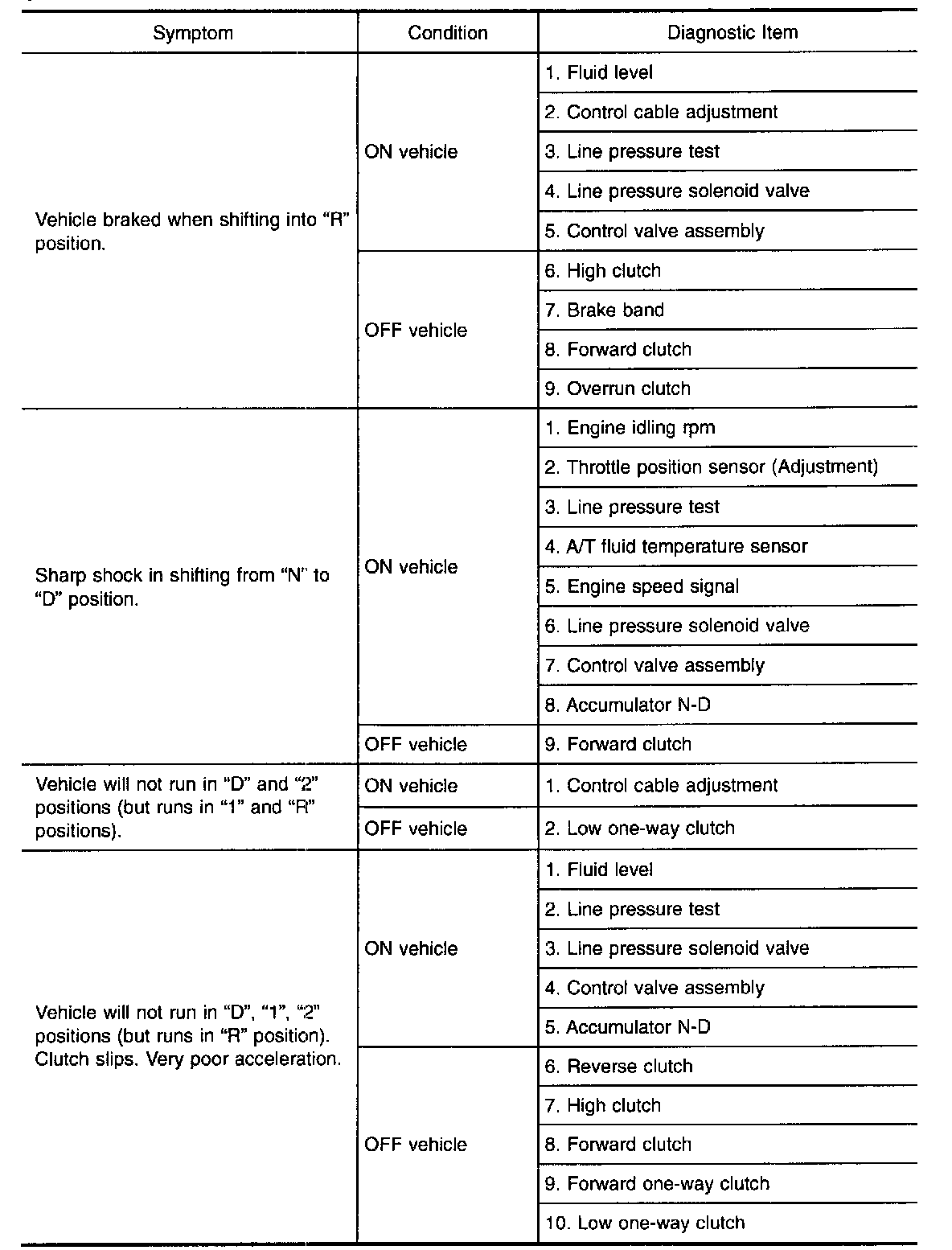 SYMPTOM CHART Numbers are arranged in order of inspection.