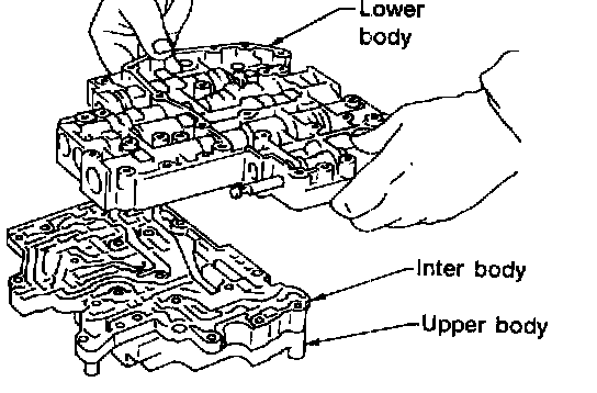 e. Place inter body as shown in the illustration. Install steel balls in their proper positions.