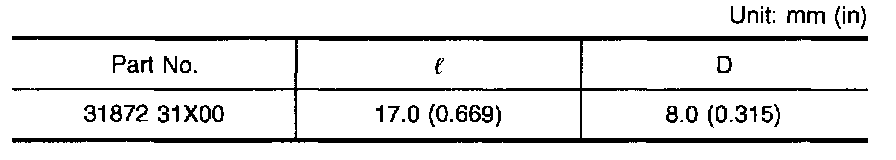 Tightening Torque: 3.4 - 4.4 Nm (0.35 - 0.45 kg-m, 30.4 - 39.1 inch lbs.)