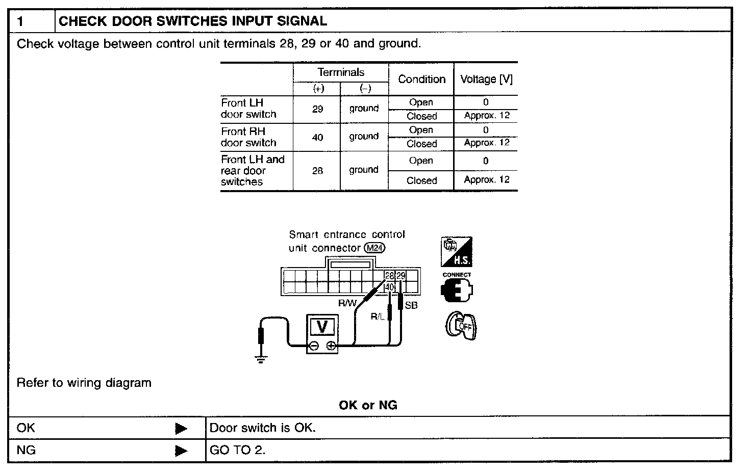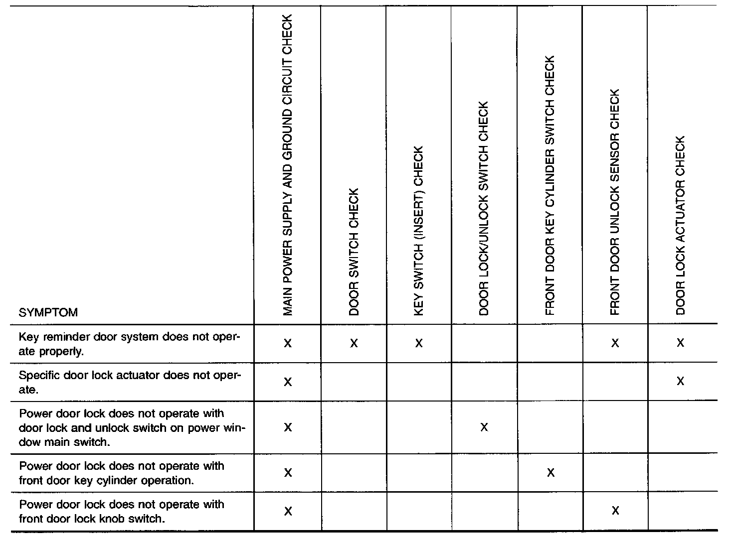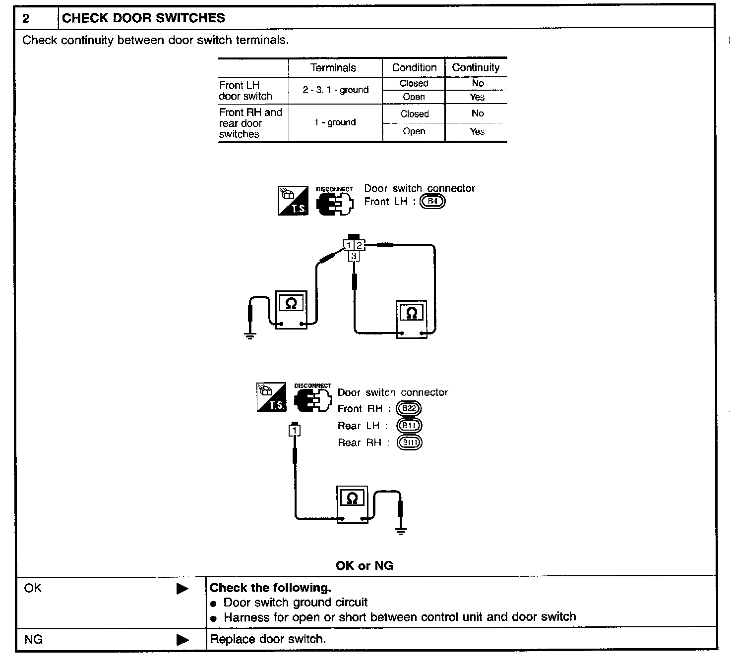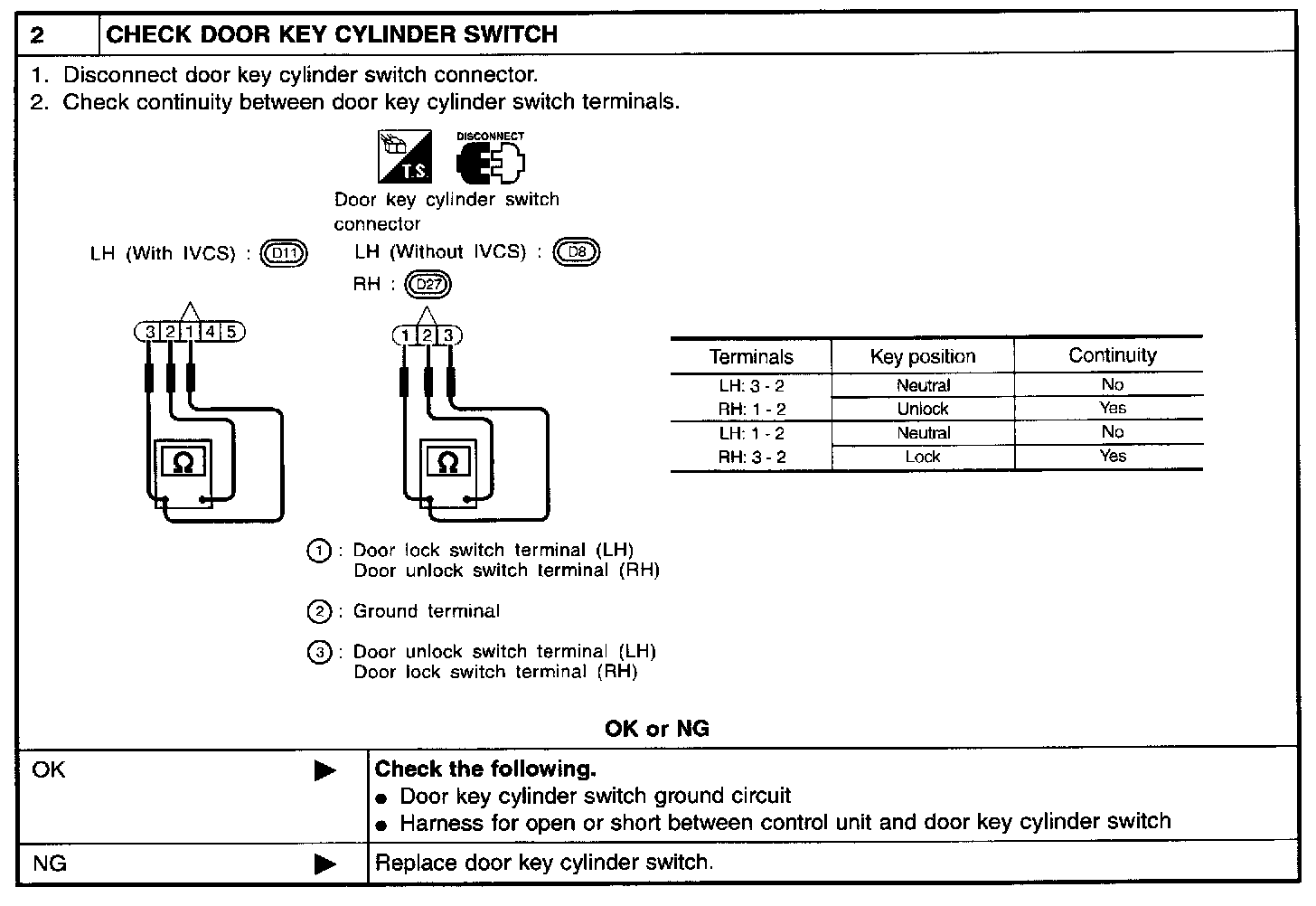 FRONT DOOR KEY CYLINDER SWITCH CHECK