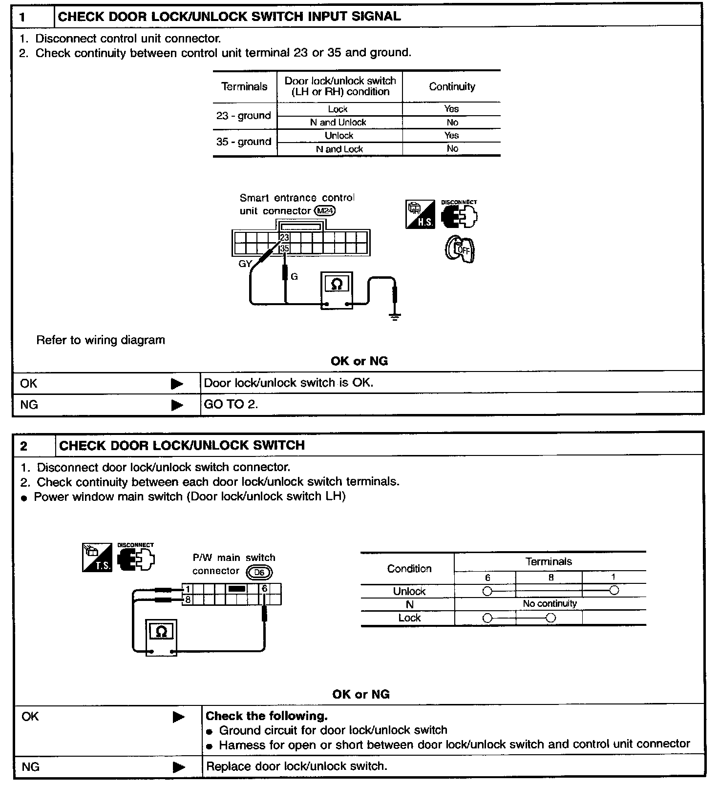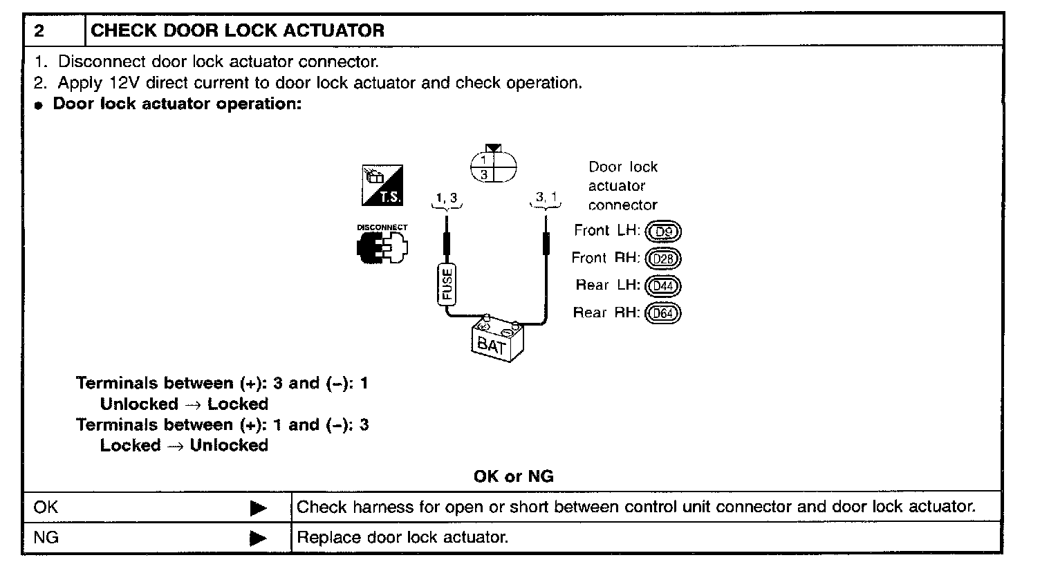 DOOR LOCK/UNLOCK SWITCH CHECK