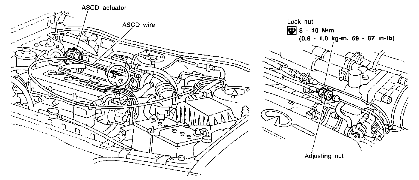 - Do not tense ASCD wire excessively during adjustment.