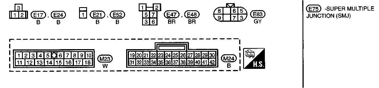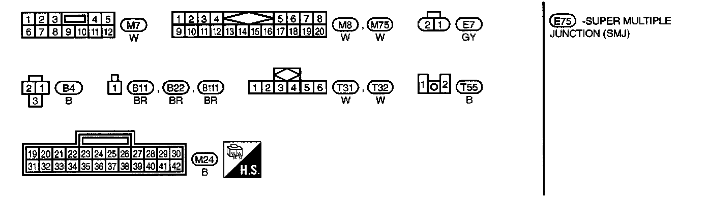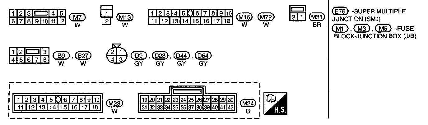 E75, M1, M3, M5 Super Multiple Junction and Fuse Block - Junction Box (J/B) Terminal Arrangement