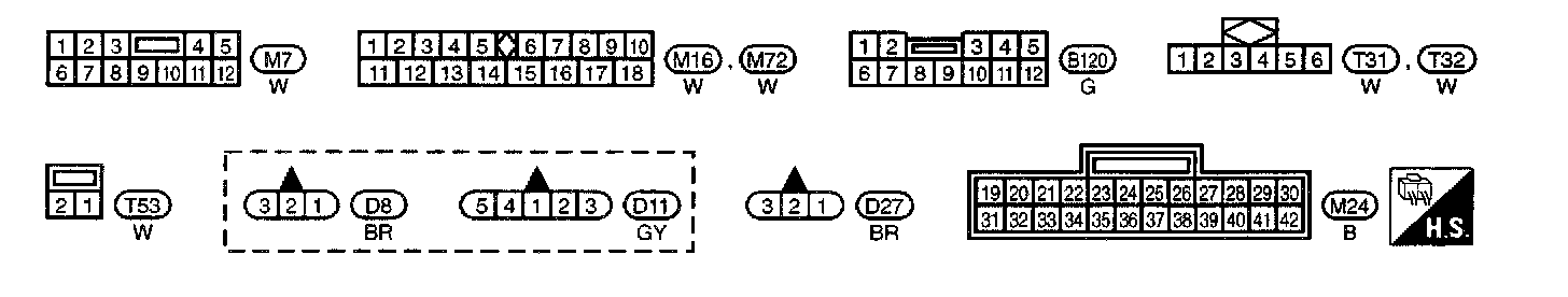 M1,M2,M3,M4,M5,B1,E71,E72,E73 Connector Views: