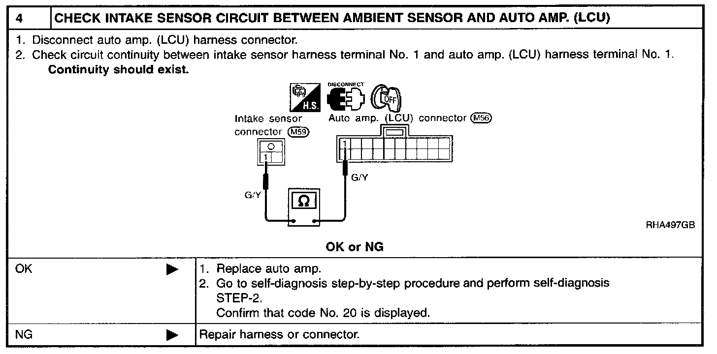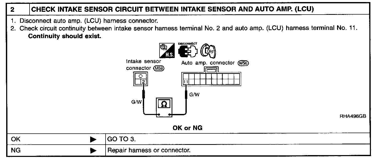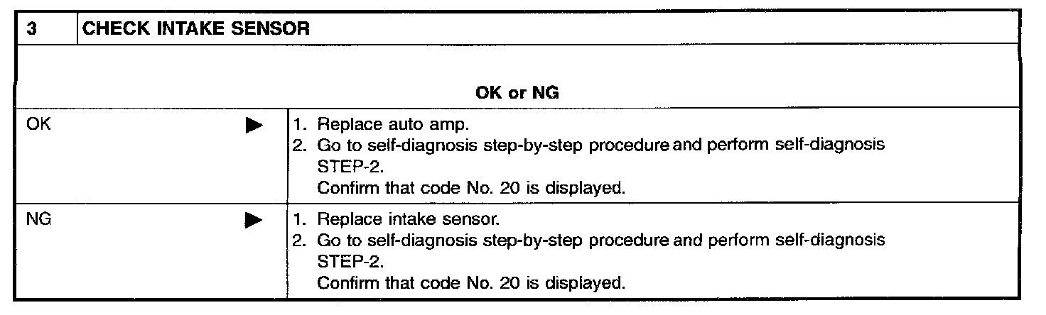 SYMPTOM: Intake sensor circuit is open or shorted. (24 or -24 is indicated on auto amp. as a result of conducting Self diagnosis STEP 2.)