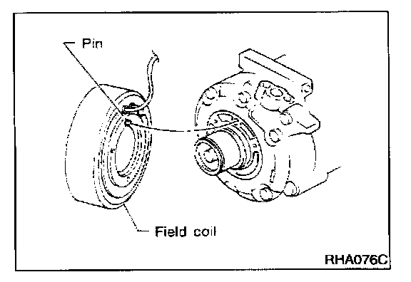 When replacing compressor clutch assembly, always conduct the break-in operation. This is done by engaging and disengaging the clutch about thirty times. Break-in operation raises the level of transmitted torque.