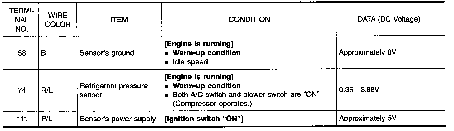 Specification data are reference values and are measured between each terminal and 48 (ECM ground).