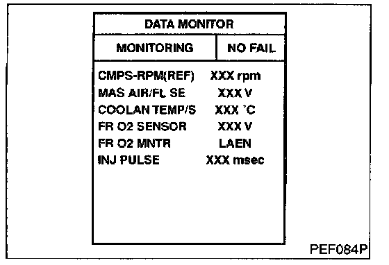3. Select "FUEL INJECTION" in "ACTIVE TEST" mode, and select "RR O2 SEN-B1" as the monitor item with CONSULT-II.