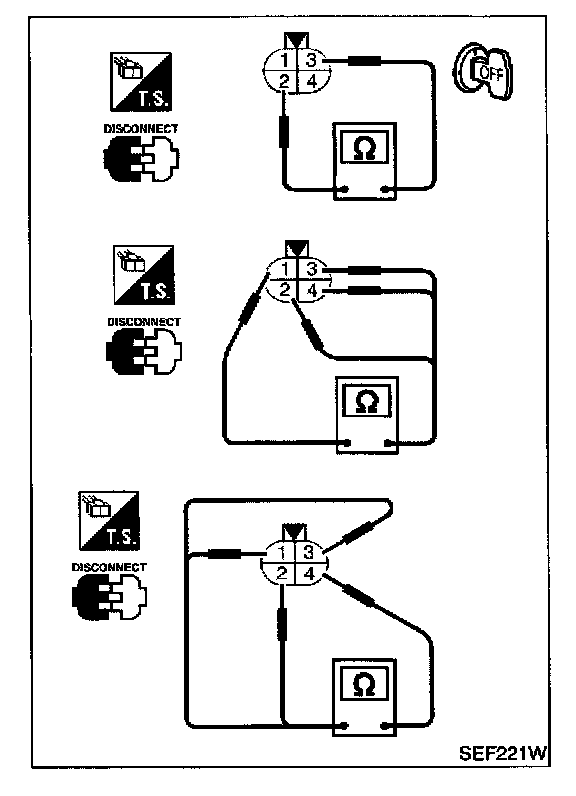 Check continuity between terminals 2 and 1, 3 and 2.