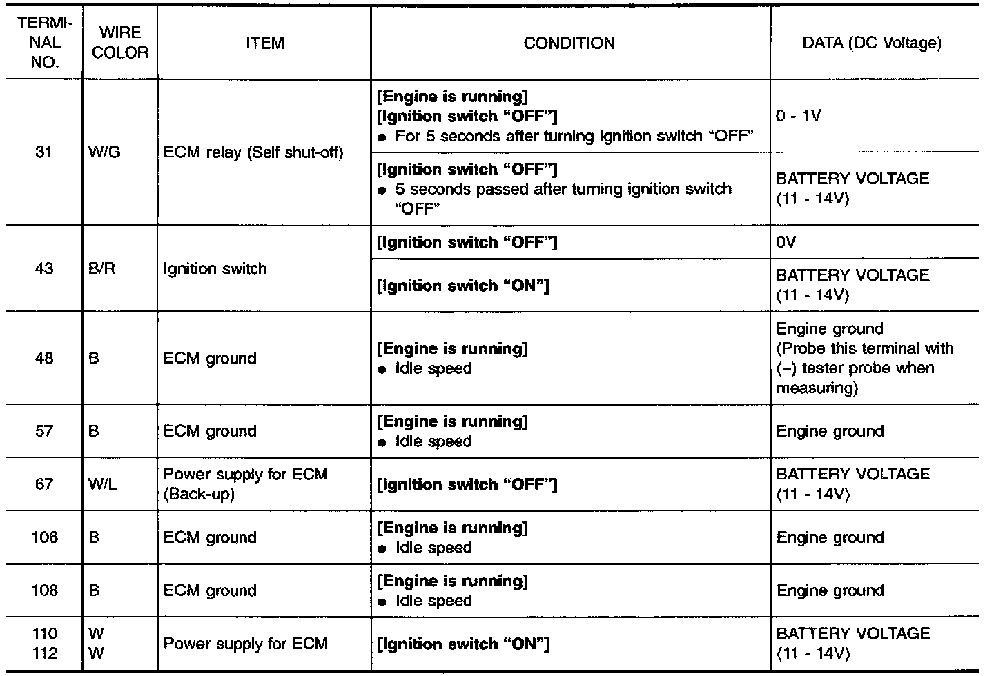 Specification data are reference values and are measured between each terminal and 48 (ECM ground).