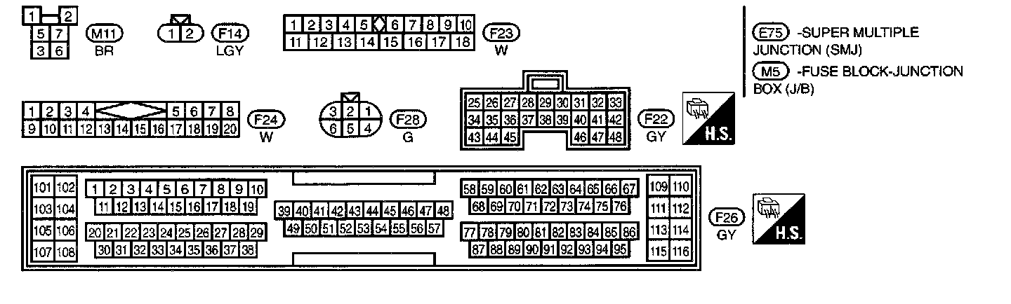 M1,M2,M3,M4,M5,B1,E71,E72,E73 Connector Views:
