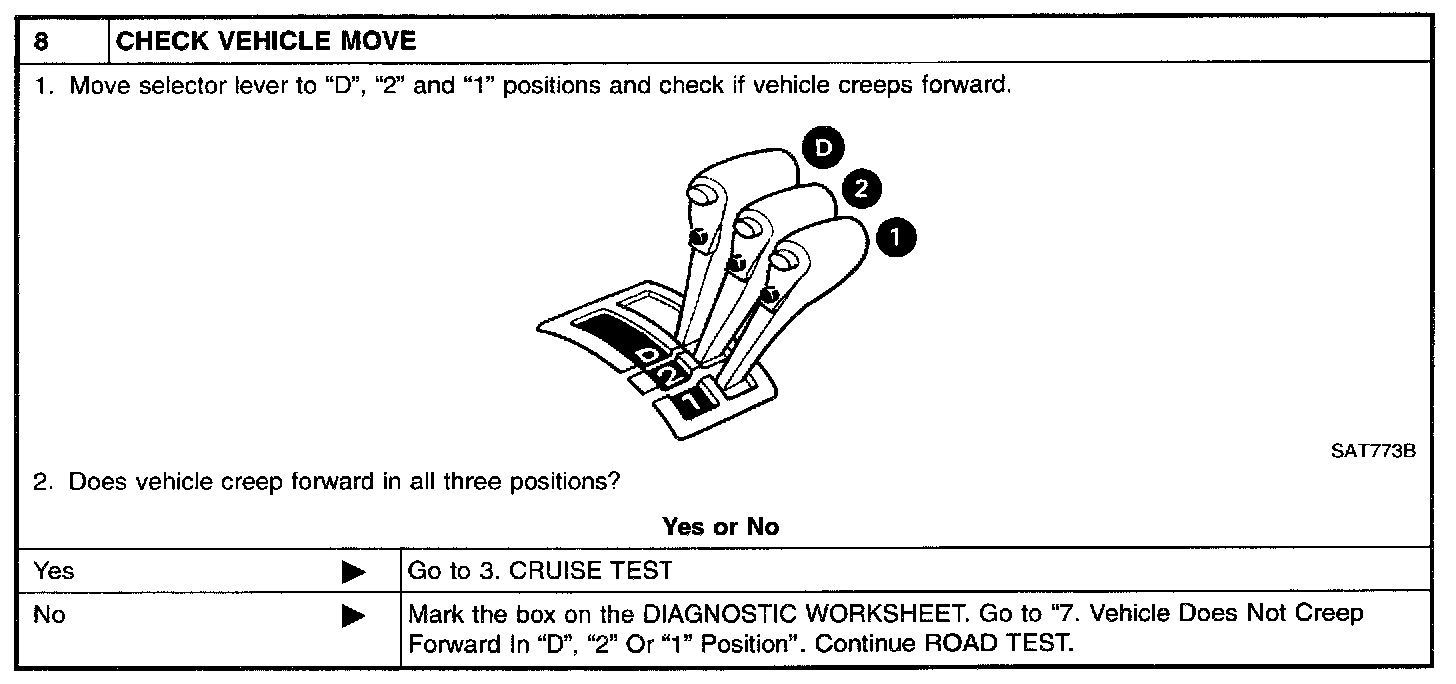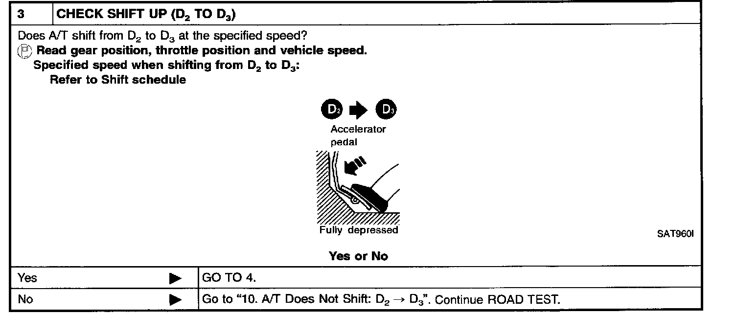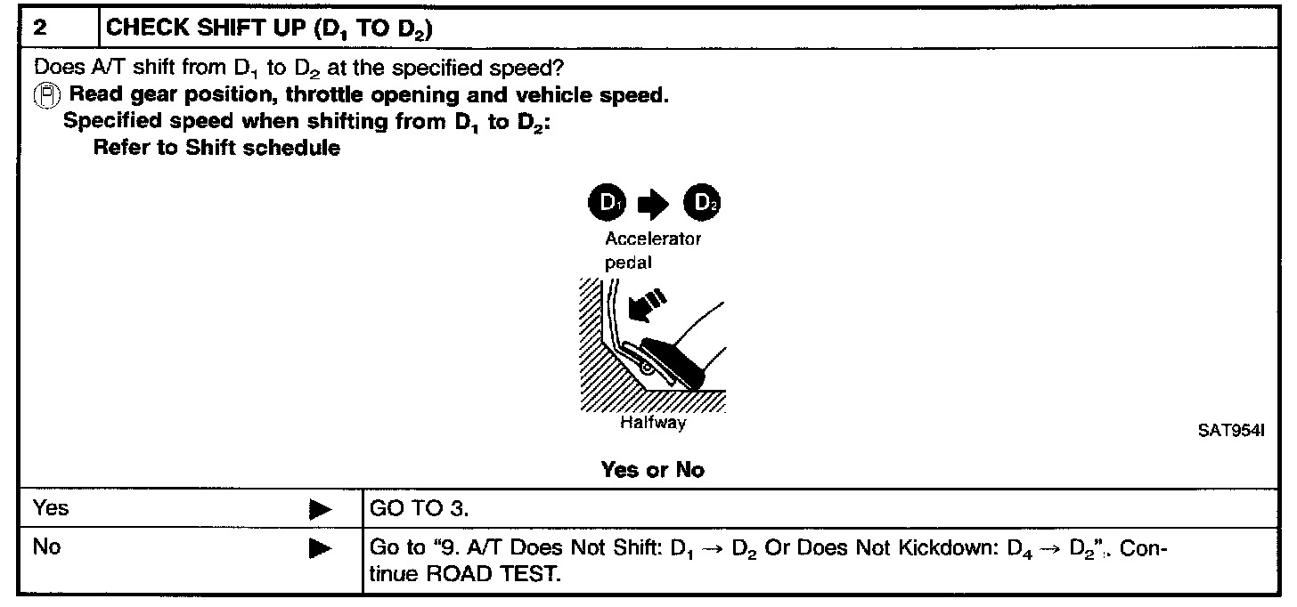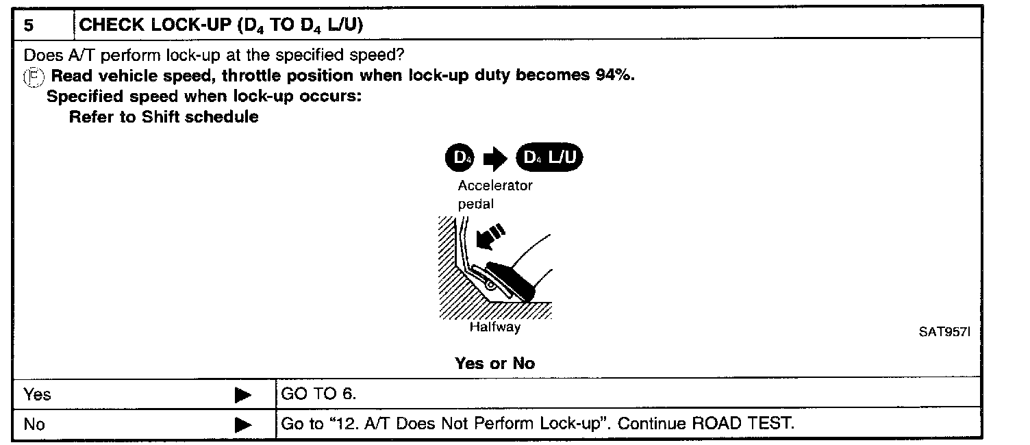 - Conduct tests on all items until specified symptom is found. Troubleshoot items which check out No Good after road test. Refer to Transmission Control Systems; Testing and Inspection.