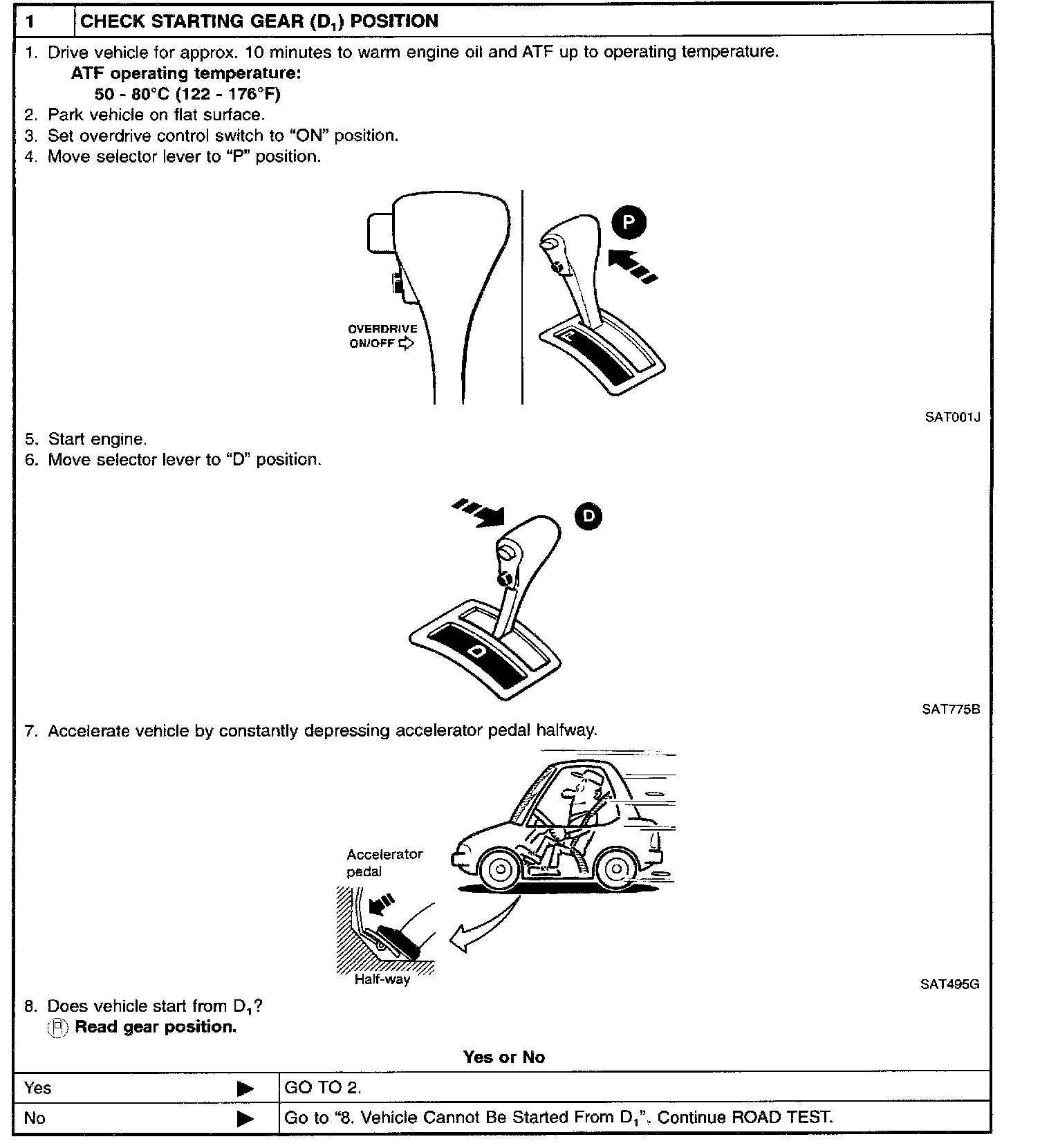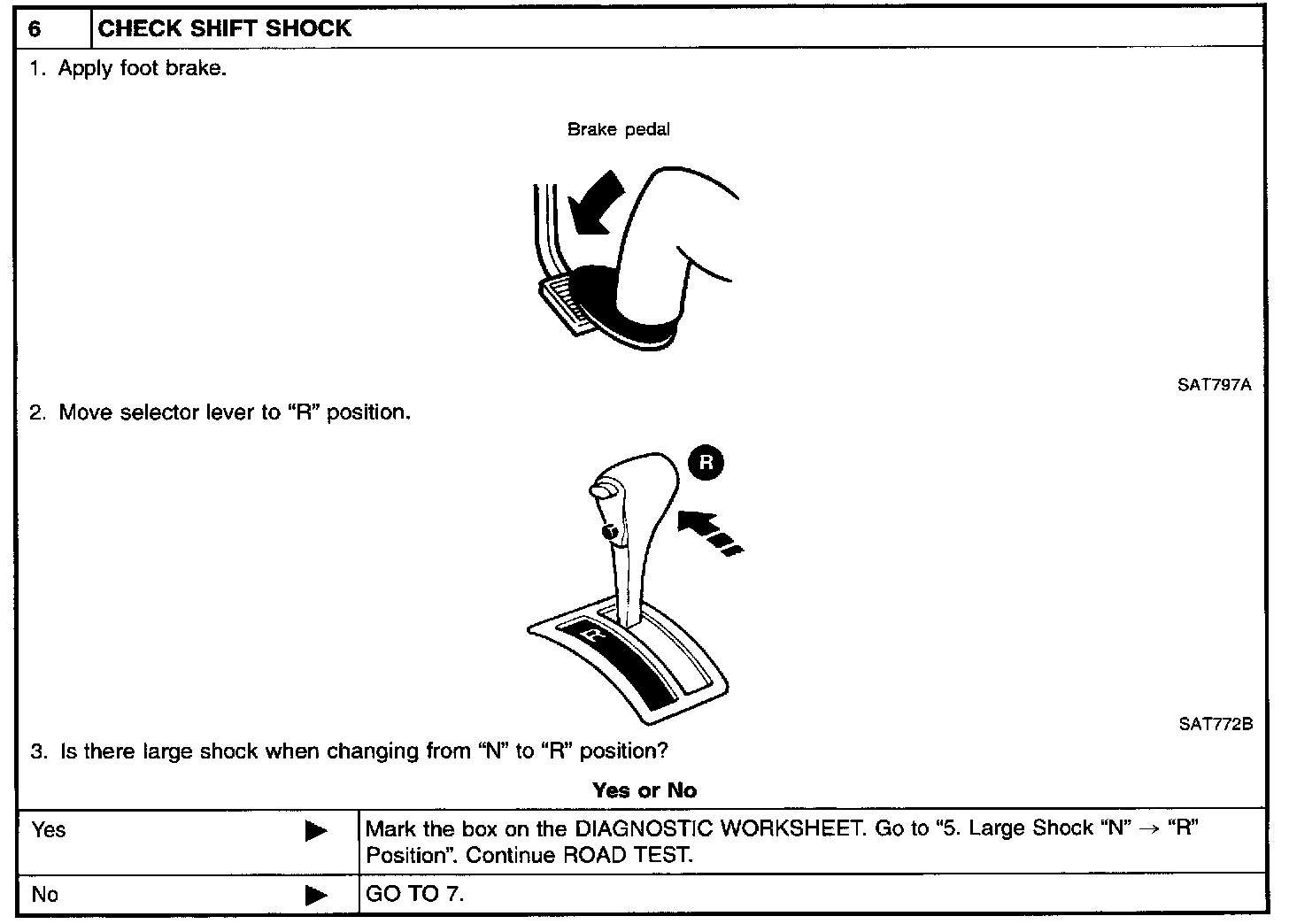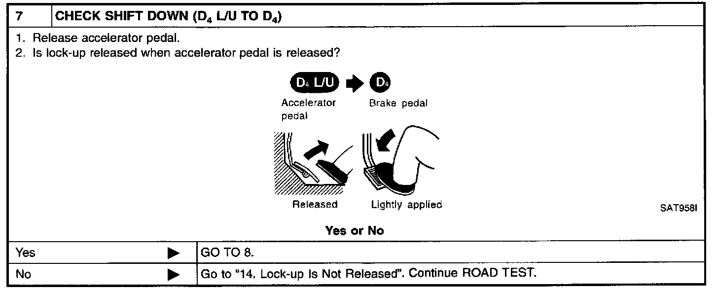- Conduct tests on all items until specified symptom is found. Troubleshoot items which check out No Good after road test. Refer to Transmission Control Systems; Testing and Inspection.