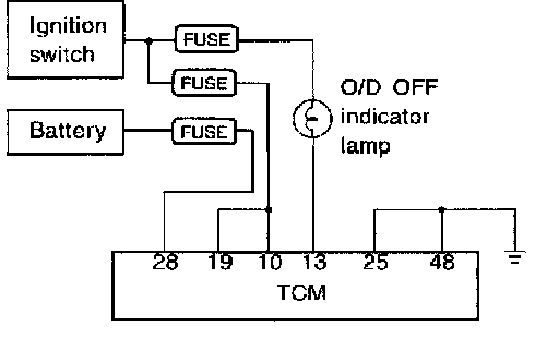 SYMPTOM: O/D OFF indicator lamp does not come on for about 2 seconds when turning
