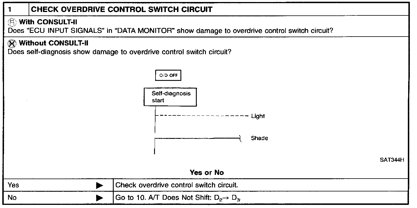 SYMPTOM: A/T does not shift from D4 to D3 when changing overdrive control switch to "OFF" position.