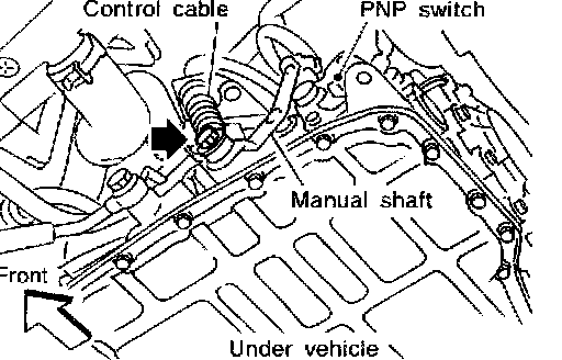 3. If OK on step 2, adjust manual control cable. Refer to Shift Cable, A/T; Adjustments.