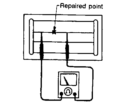 4. After repair has been completed, check repaired wire for continuity. This check should be conducted 10 minutes after silver composition is deposited.