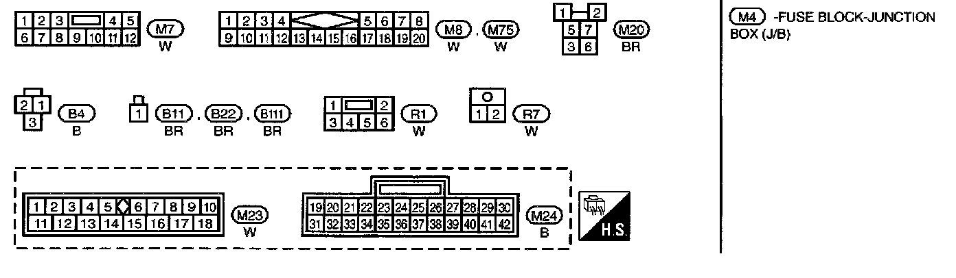 E75, M1, M2, M3, E72 Super Multiple Junction and Fuse Block - Junction Box (J/B) Terminal Arrangement