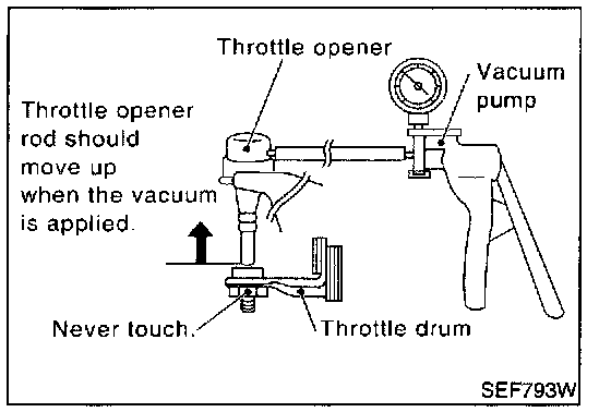 5. Apply vacuum [more than -40.0 kPa (-300 mmHg, 11.81 inHg)] until the throttle drum becomes tree from the rod of the throttle opener.