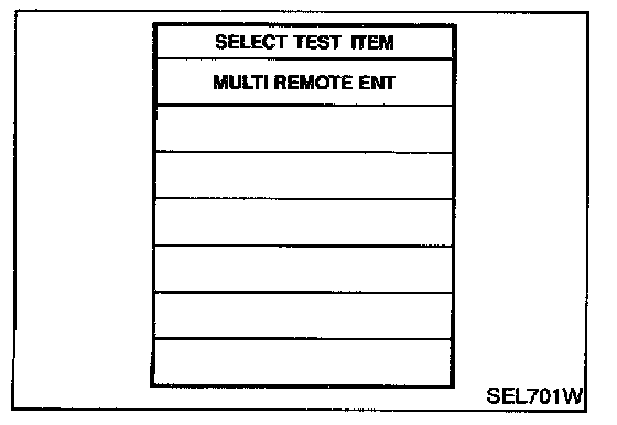 REMOTE CONTROLLER ID SET UP WITH CONSULT-IINOTE: If a remote controller is lost, the ID code of the lost remote controller must be erased to prevent unauthorized use. When the ID code of a lost remote controller is not known, all controller ID codes should be erased. After all ID codes are erased, the ID codes of all remaining and/or new remote controllers must be re-registered.