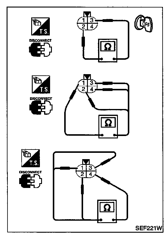 5. Check the voltage when revving up to 6,000 rpm under no load. Or keep vehicle at idling for 10 minutes, then check the voltage. Or check the voltage when coasting from 80 km/h (50 MPH) in 3rd gear position (M/T), D position with "OD" OFF (A/T).