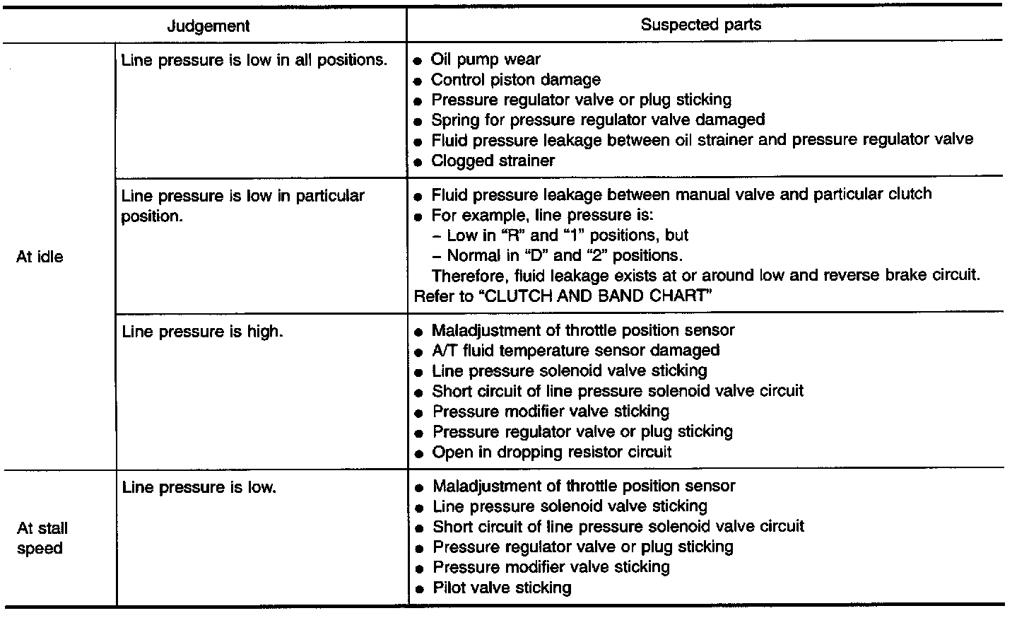 - When measuring line pressure at stall speed, follow the stall test procedure.