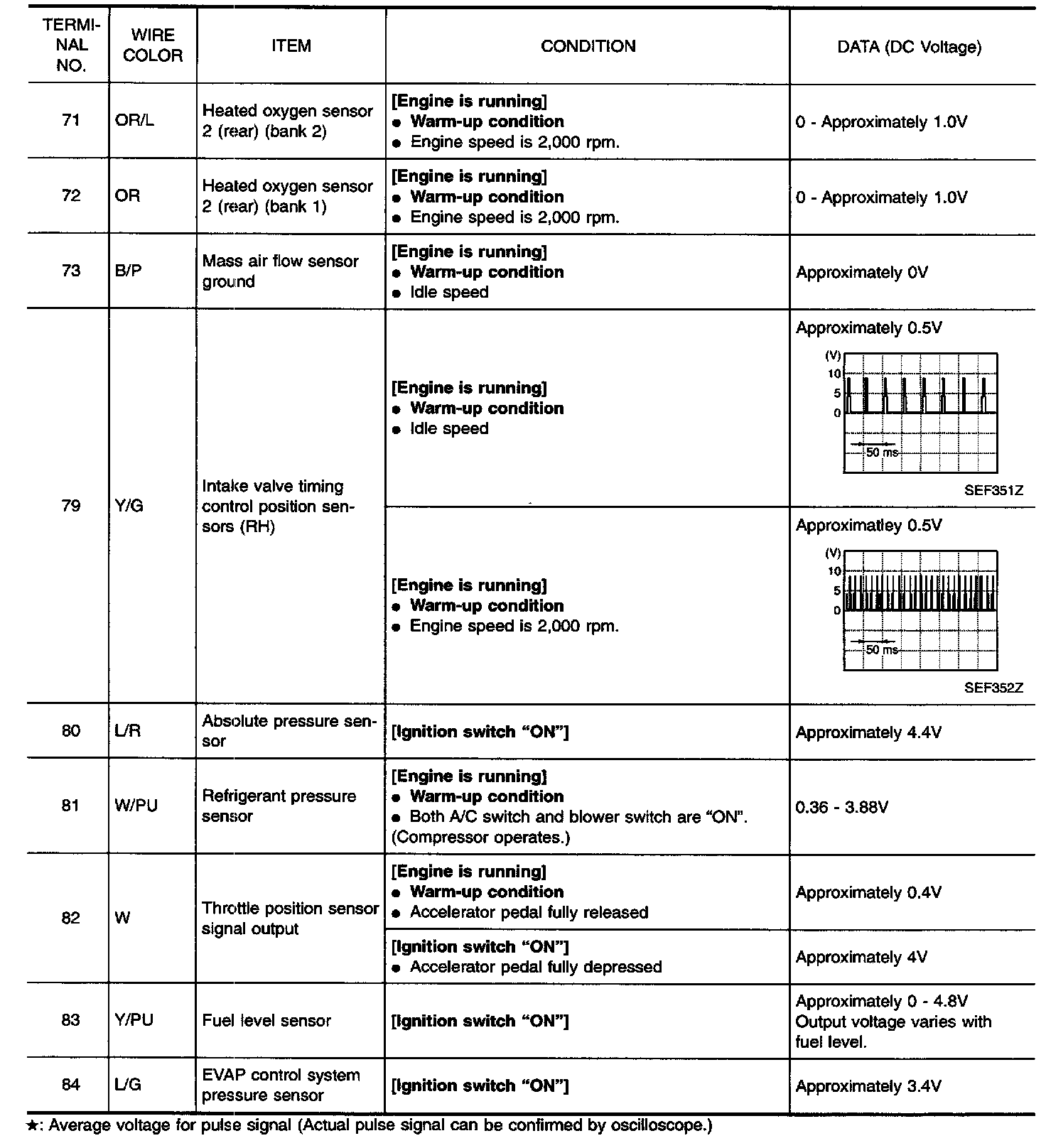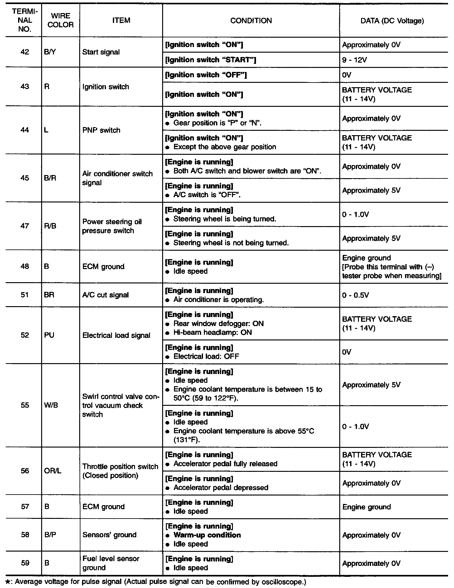 CAUTION: Do not use ECM ground terminals when measuring the input/output voltage. Doing so may result in damage to the ECM's transistor. Use ground other than the ECM terminals, such as the ground.