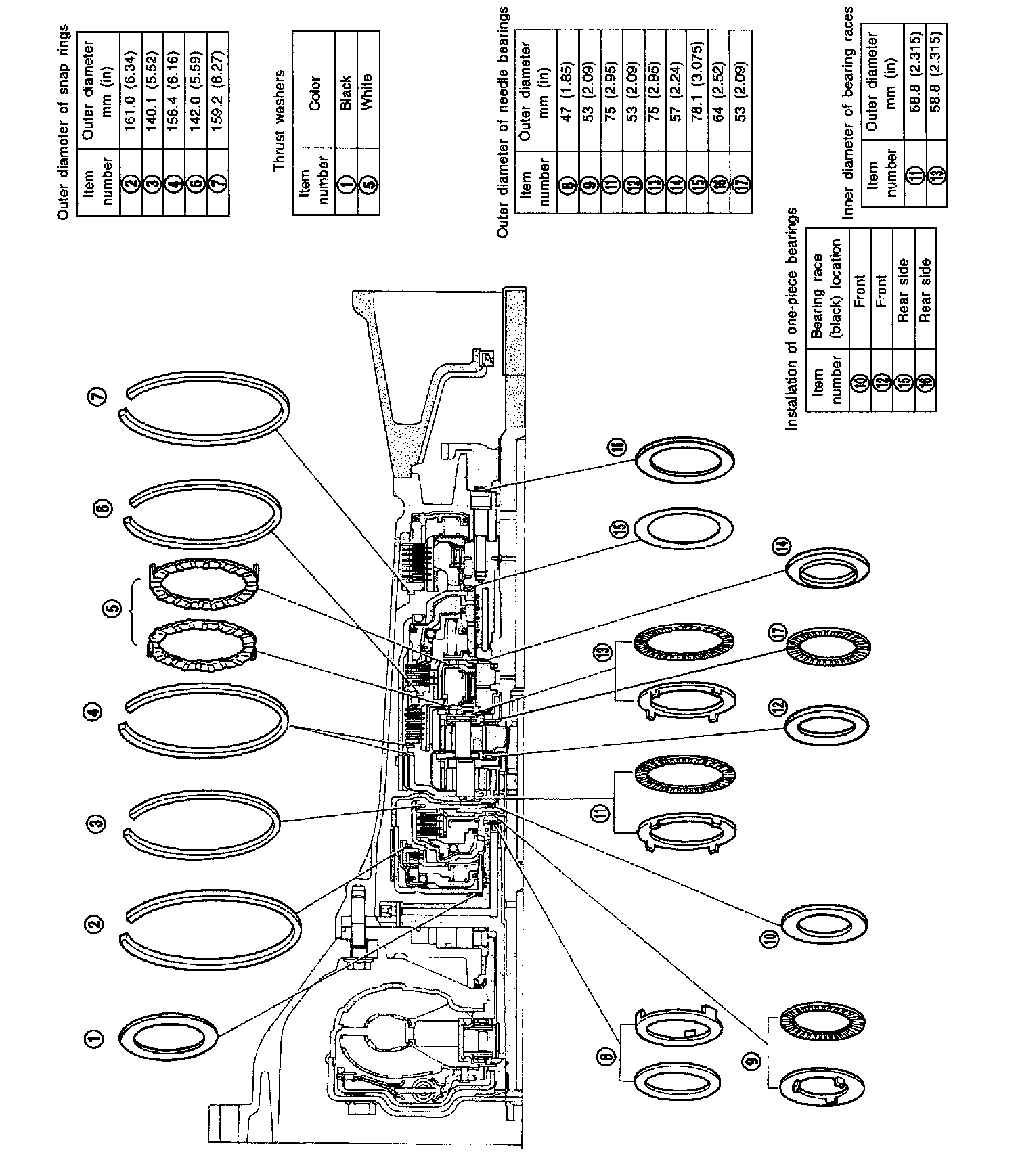 LOCATIONS OF NEEDLE BEARINGS, THRUST WASHERS AND SNAP RINGS