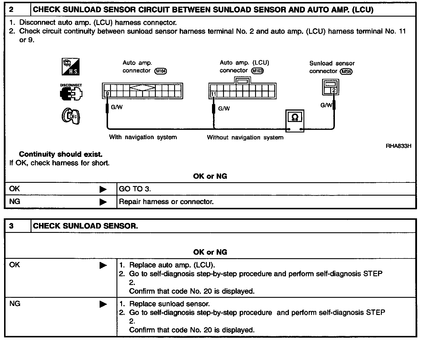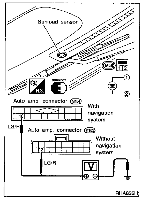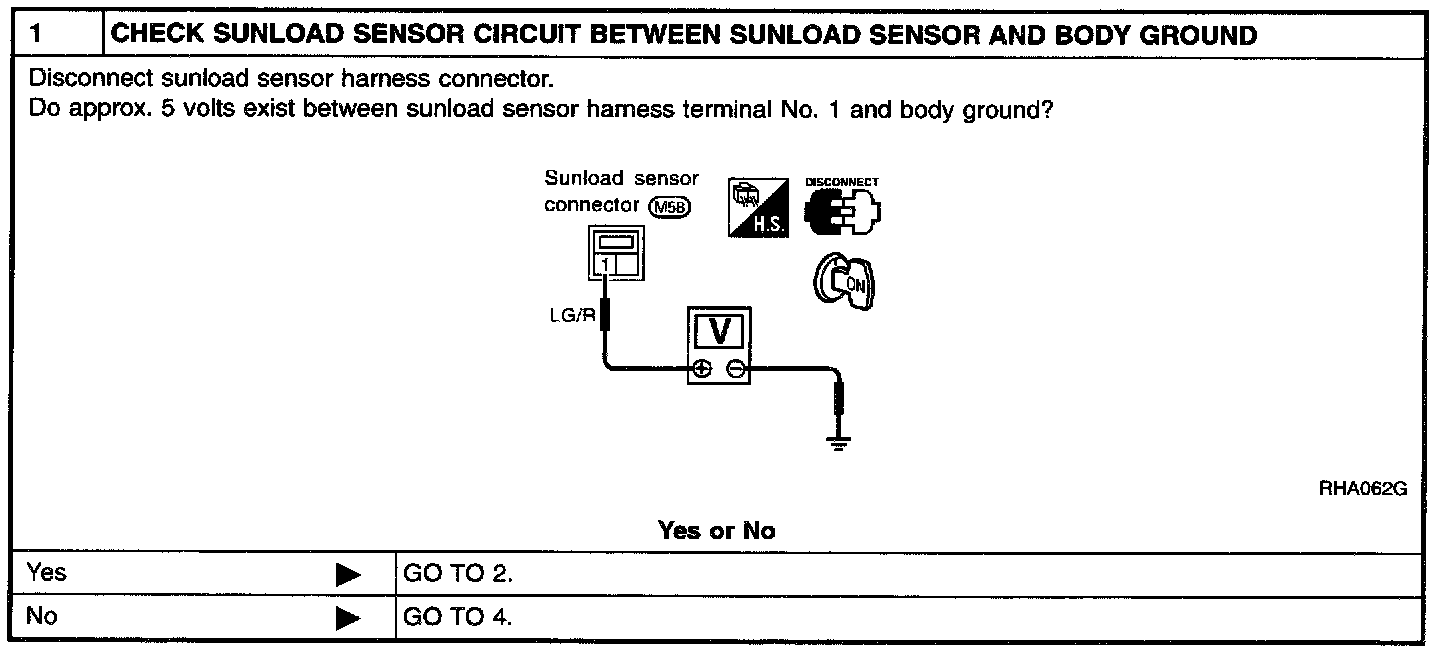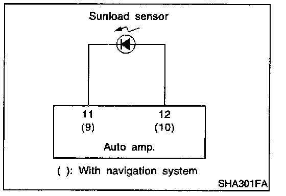 SYMPTOM: Sunload sensor circuit is open or shorted. (25 or -25 is indicated on the display as a result of conducting Self-diagnosis STEP 2.)