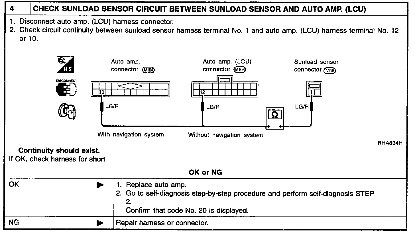 If NG, replace sunload sensor.