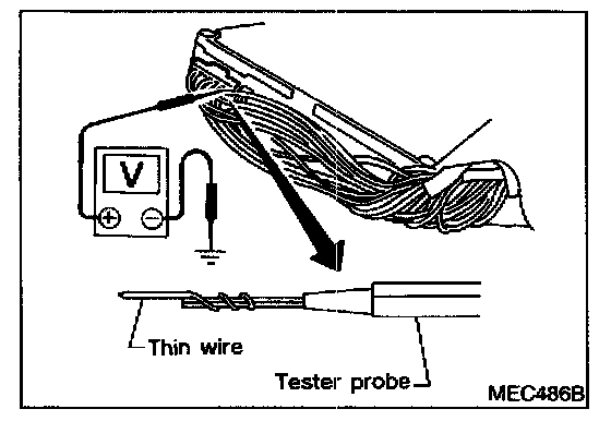 3. Perform all voltage measurements with the connector connected. Extend tester probe as shown to perform tests easily.