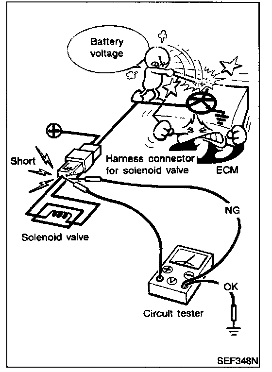 - Do not use ECM ground terminals when measuring input/output voltage. Doing so may result in damage to the ECM's transistor. Use a ground other than the ECM terminals, such as the ground.