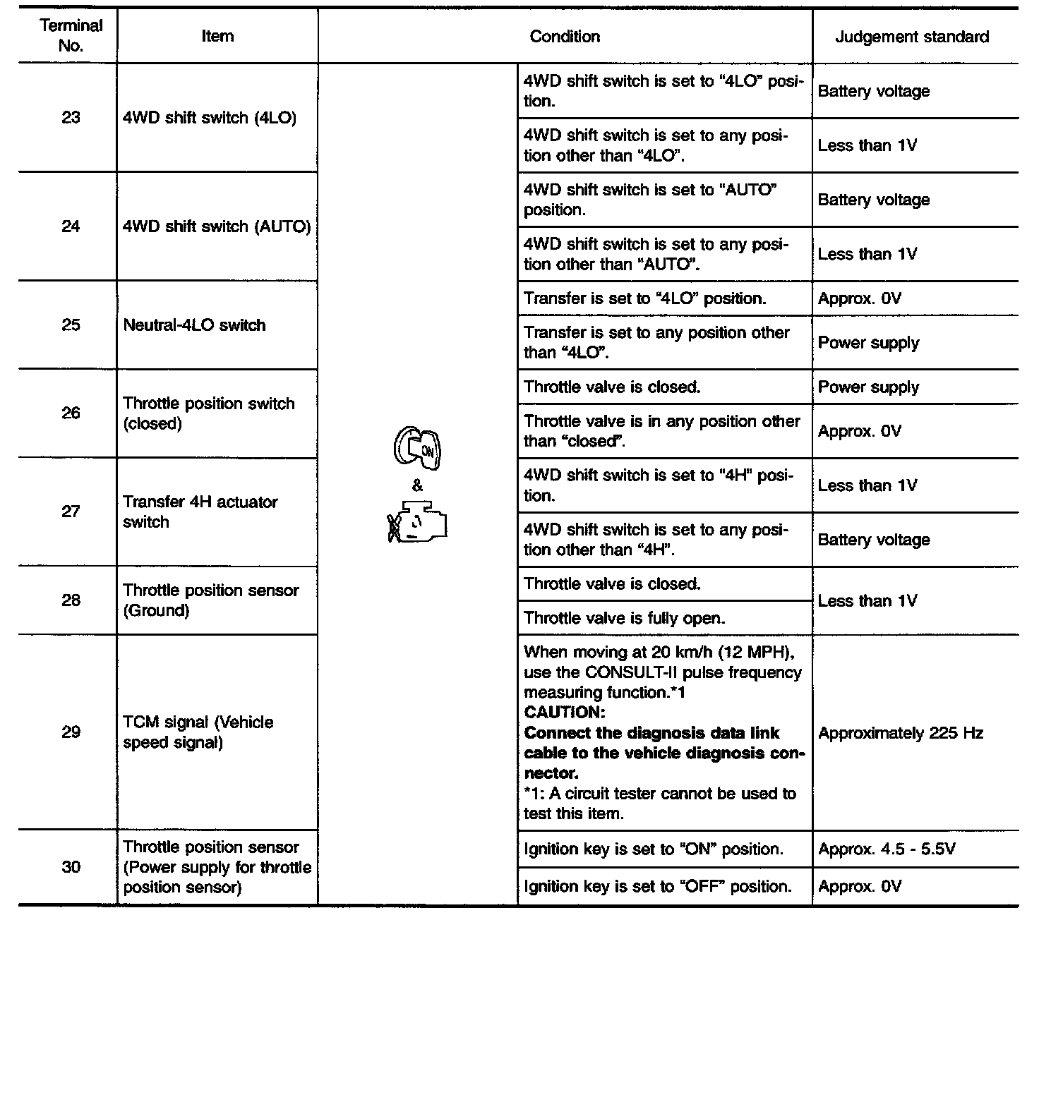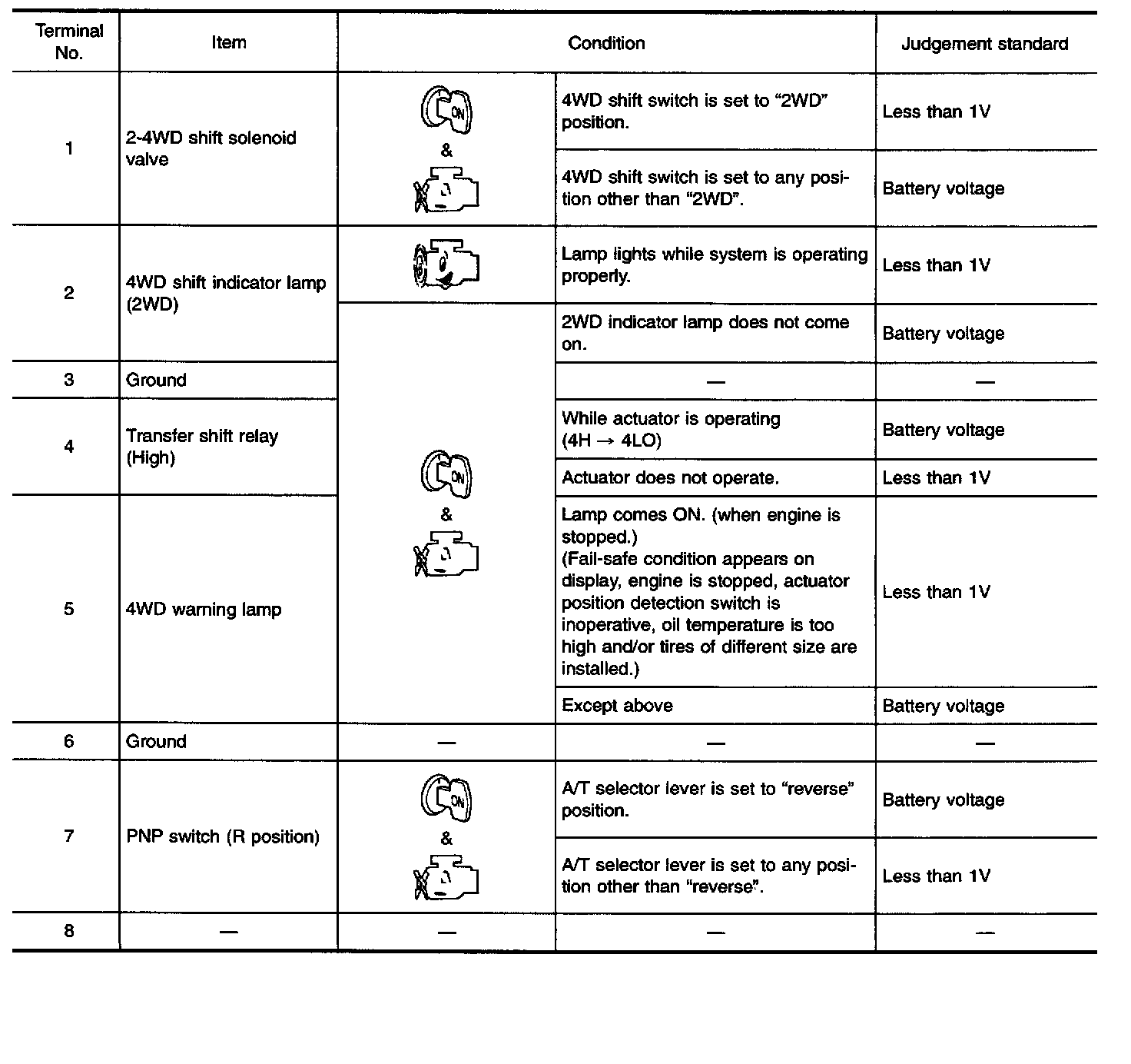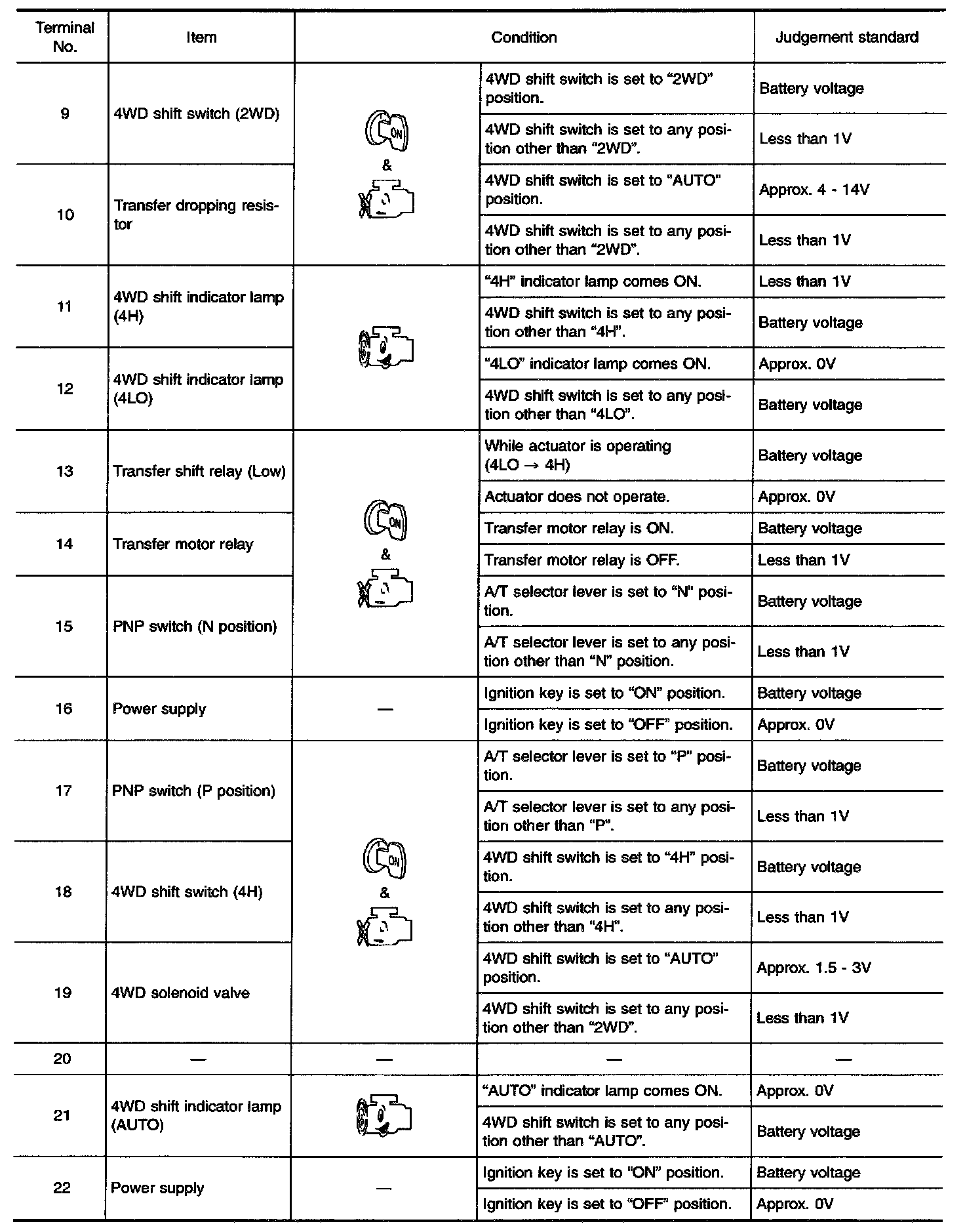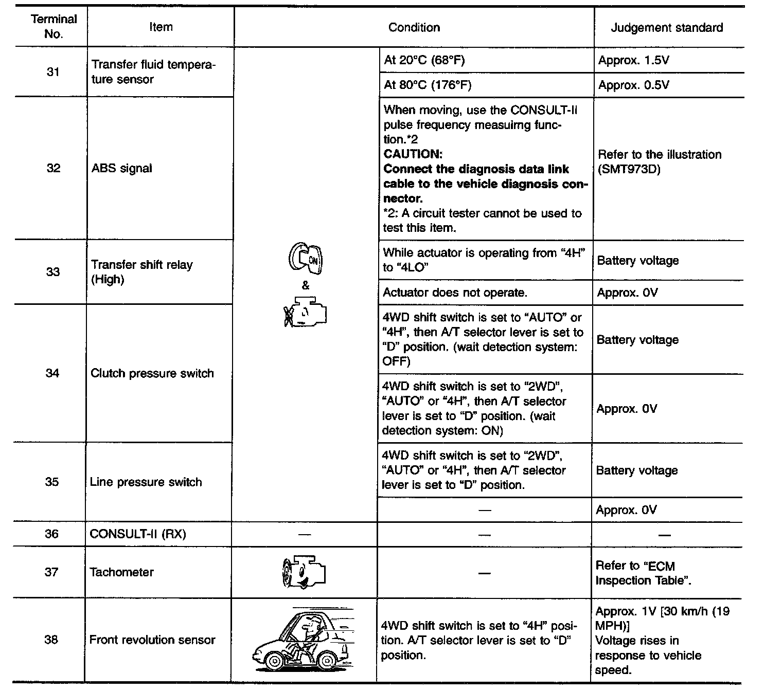 TRANSFER CONTROL UNIT INSPECTION TABLE (Data are reference values.)