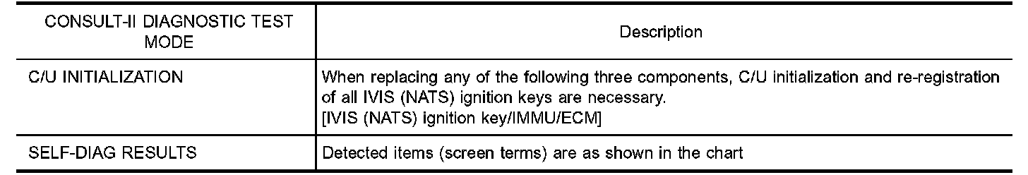 - The engine cannot be started with an unregistered key. In this case, the system will show "DIFFERENCE OF KEY" or "LOCK MODE" as a self-diagnostic result on the CONSULT-II screen.