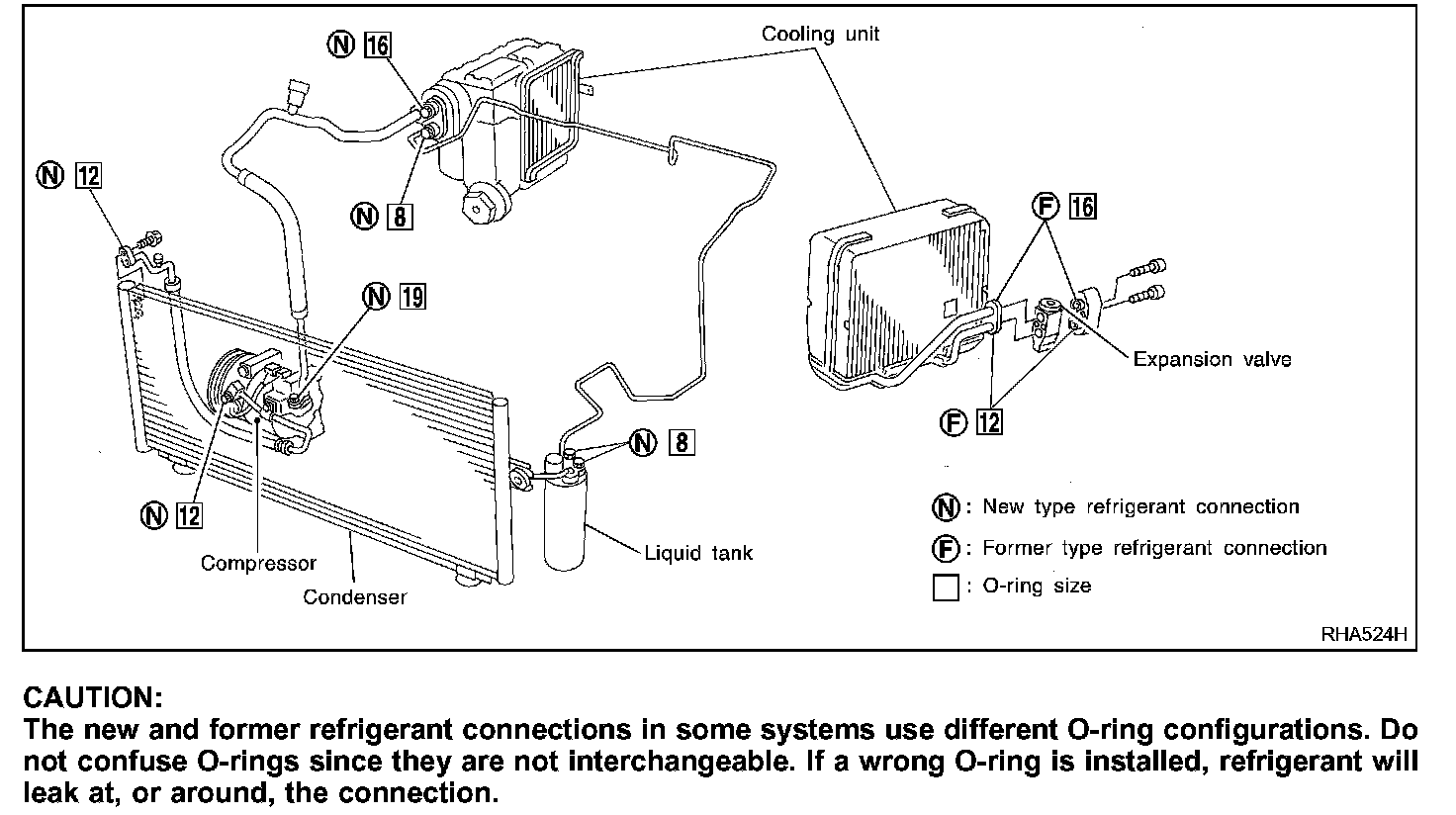 A new type refrigerant connection has been introduced to all refrigerant lines except the following location.* Expansion Valve to Cooling Unit