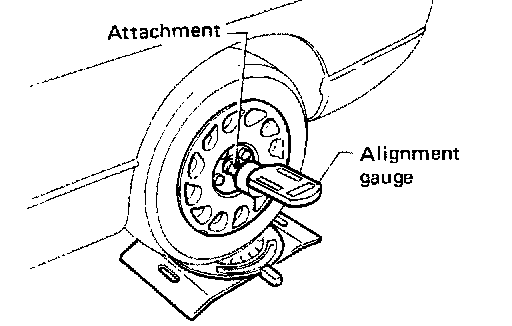 1. Set wheels in straight-ahead position. Then move vehicle forward until front wheels rest on turning radius gauge properly.